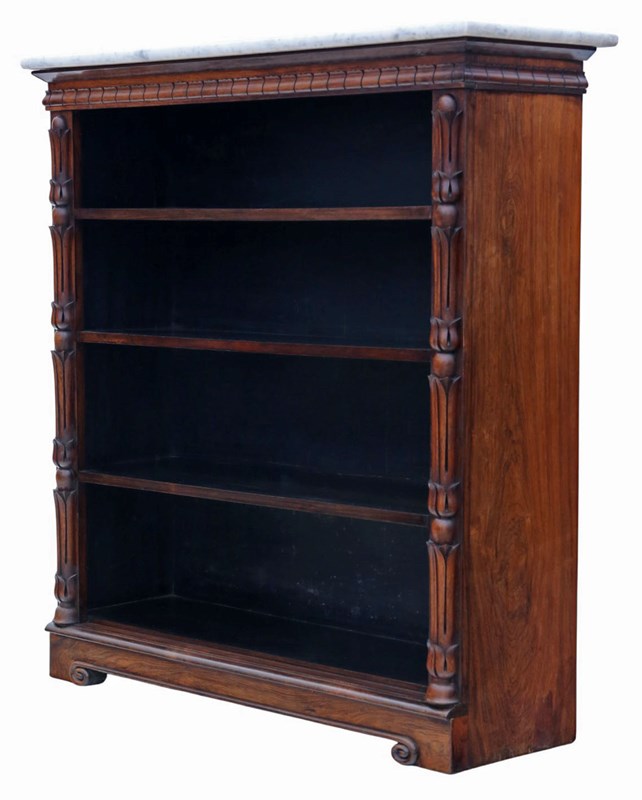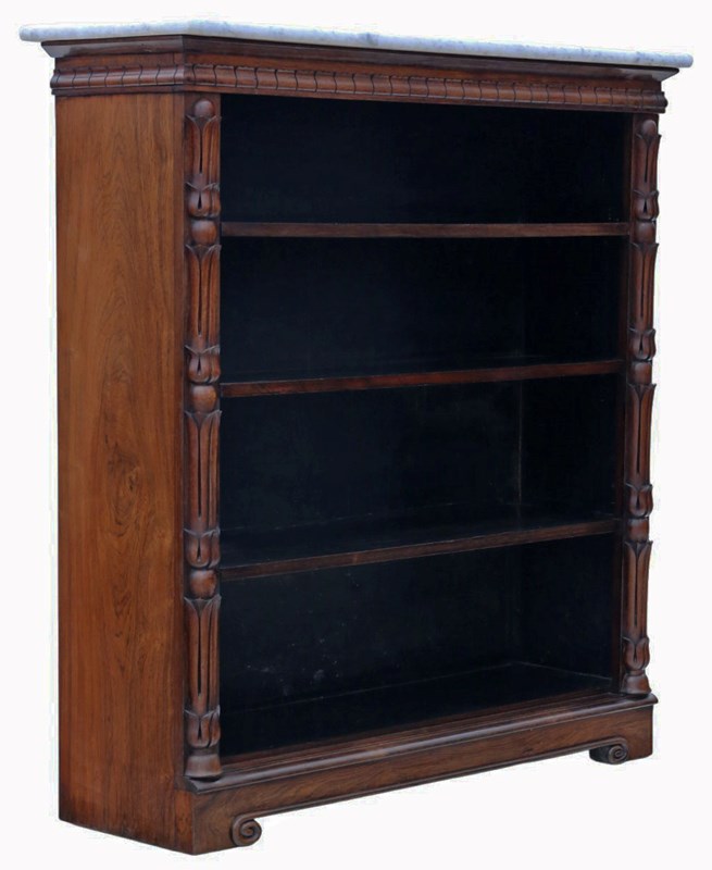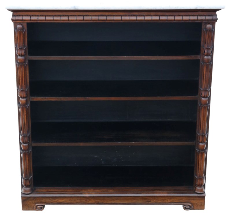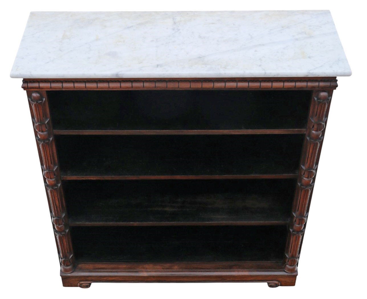 Antique 19th Century Softwood Adjustable Bookcase with Rosewood Veneer and Patinated Marble Top