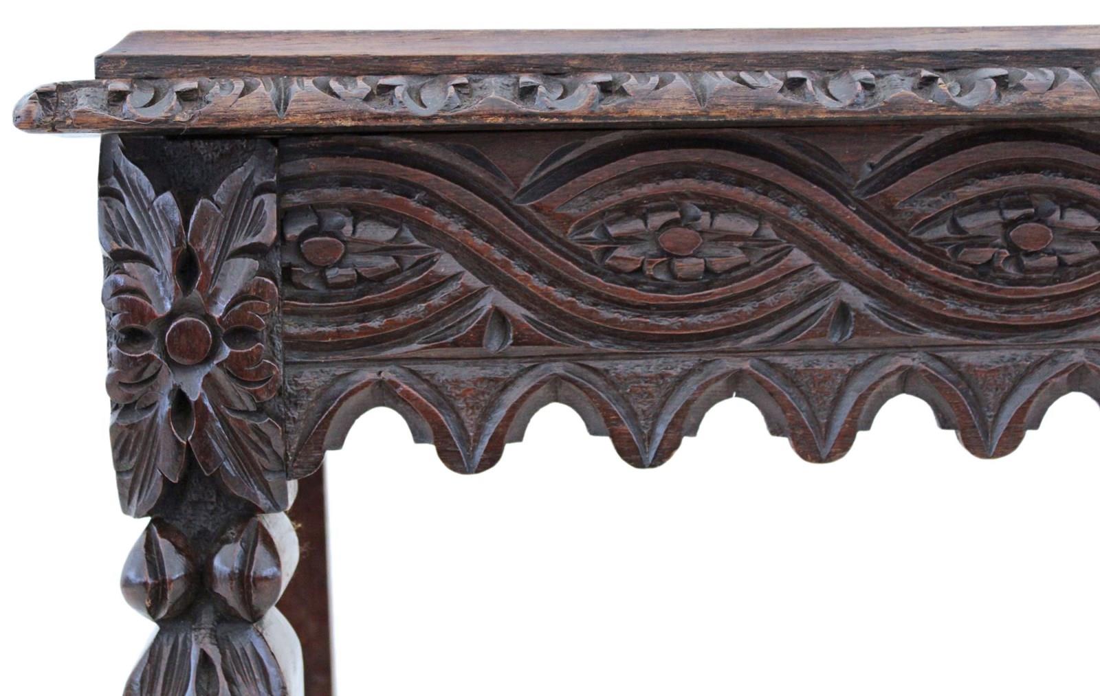 Antique 19Th Century Victorian Heavily Carved Oak Side Writing Desk Table