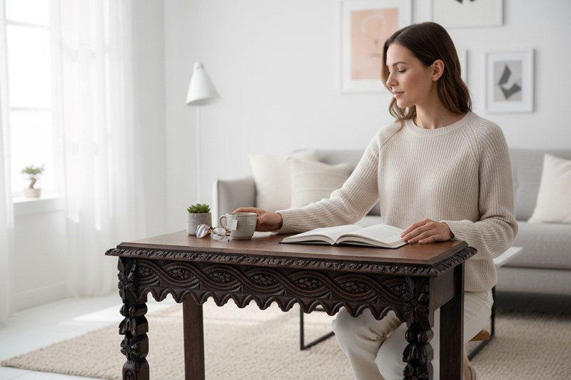 A characterful and decorative Victorian table, combining bold carving with practical