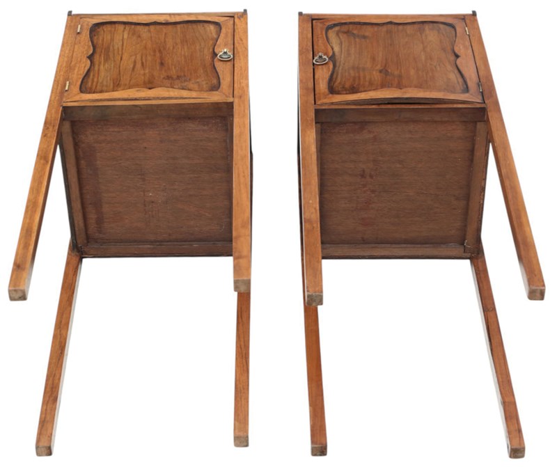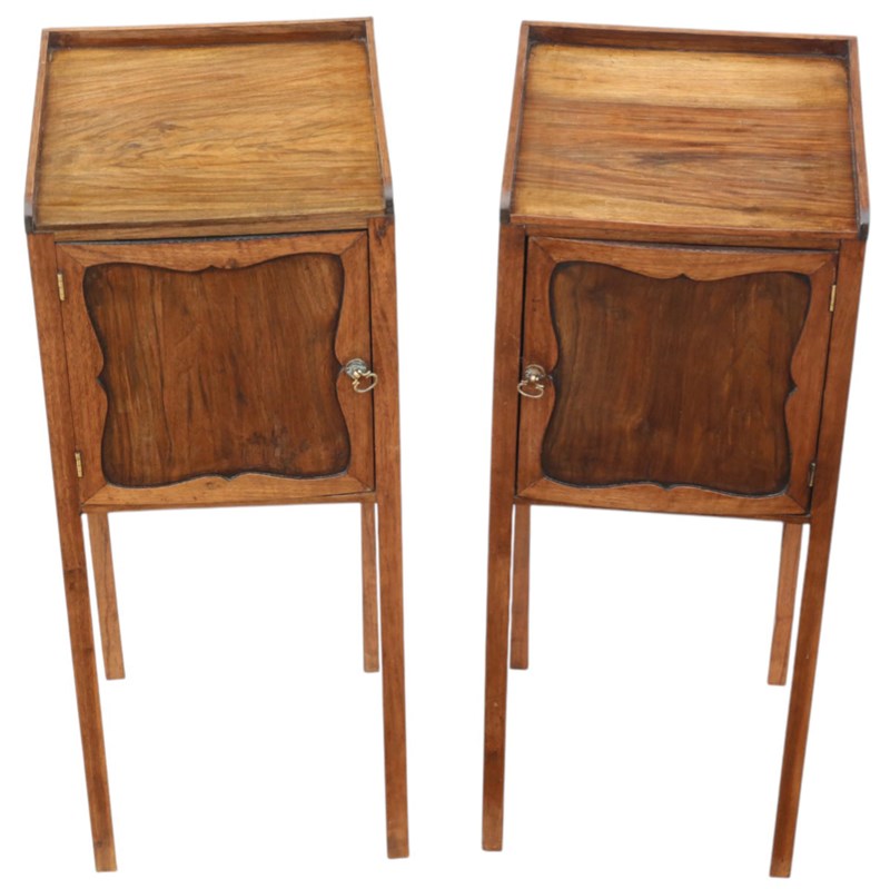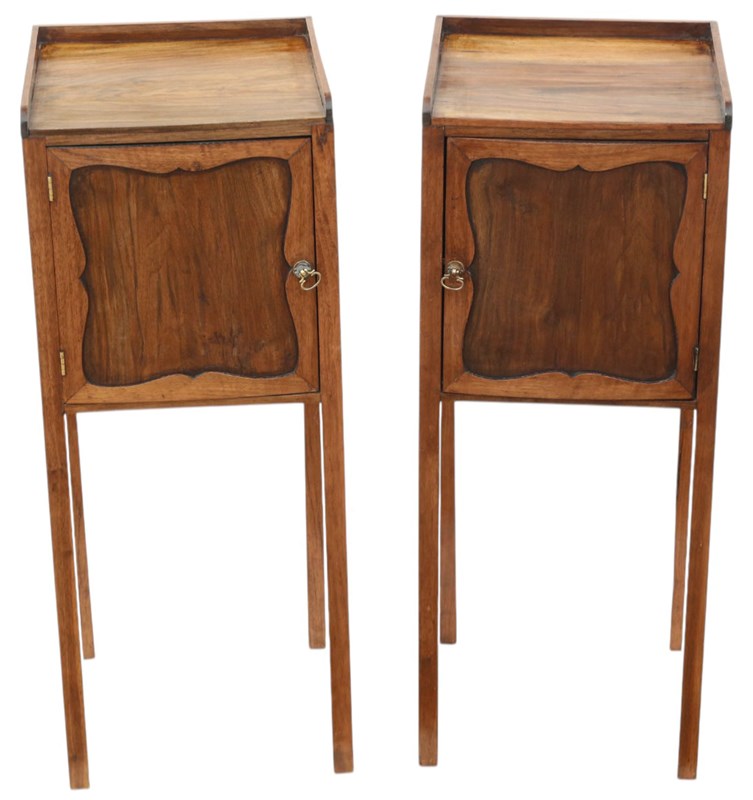 Antique 19Th Century Walnut Pair Of Tray-Top Bedside Tables Quality Nightstands