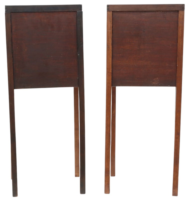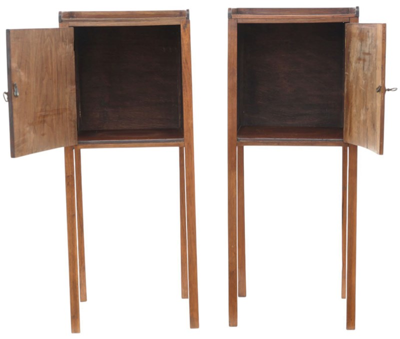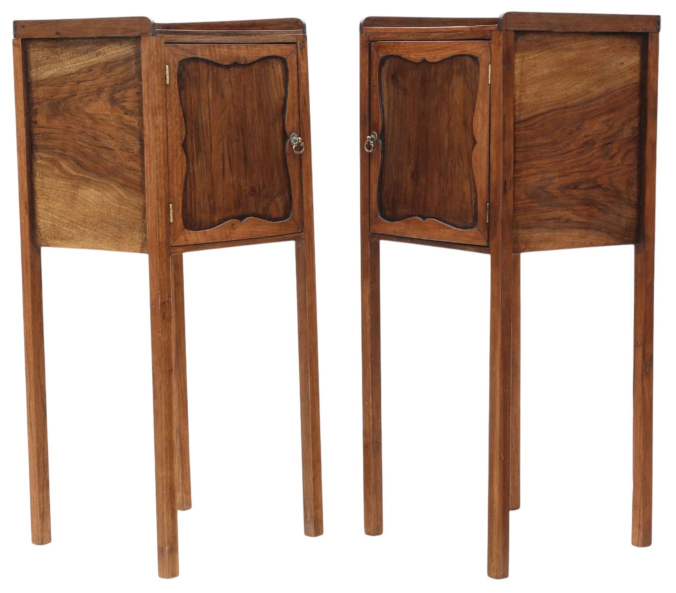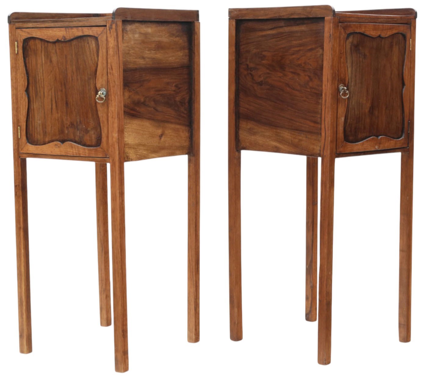 Expertly constructed, these tables are strong with no loose joints. Each cupboard door is fitted with working catches, ensuring secure closure. Their graceful design and classic styling make them ideal for use as bedside tables, lamp stands, or occasional side tables in both traditional and contemporary interiors.