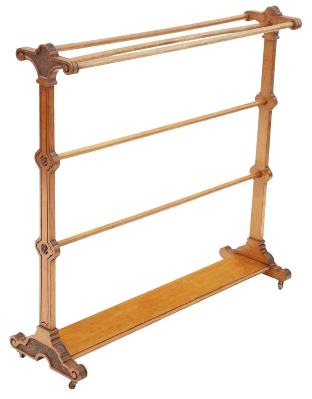 Antique Arts & Crafts Oak Towel Rail Stand – Large C.1900, Quality Country House