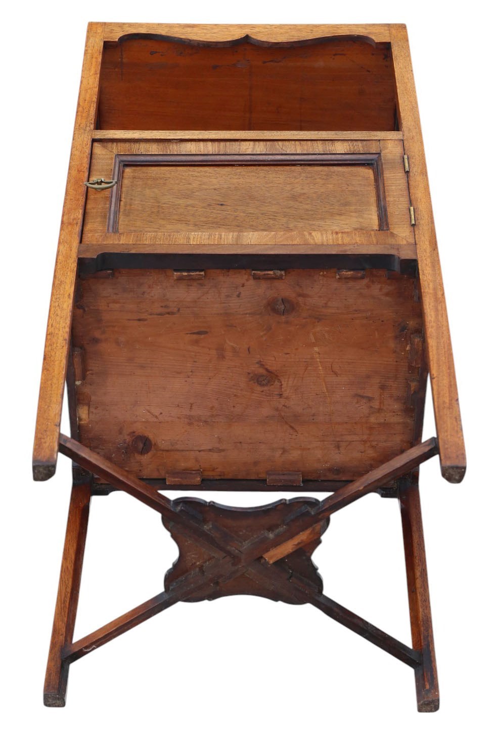 Beautifully crafted from solid mahogany, this stand is strong and sturdy with no loose joints. The catch is in working order. The piece displays lovely aged tones, authentic character, and classic Georgian design.