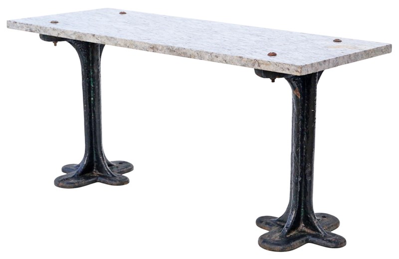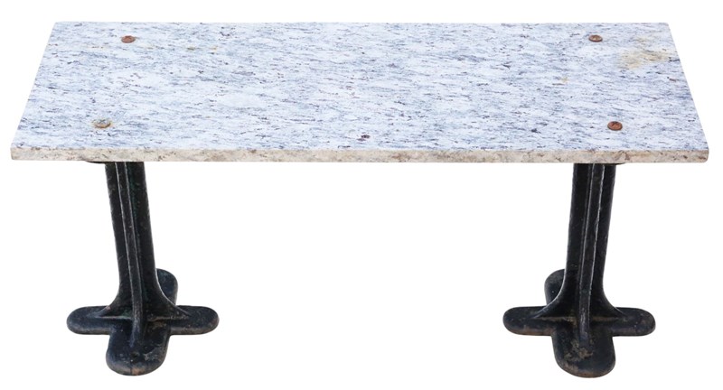 Antique C1900 Marble & Cast Iron Table Or Seat – Kitchen, Conservatory, Or Garde