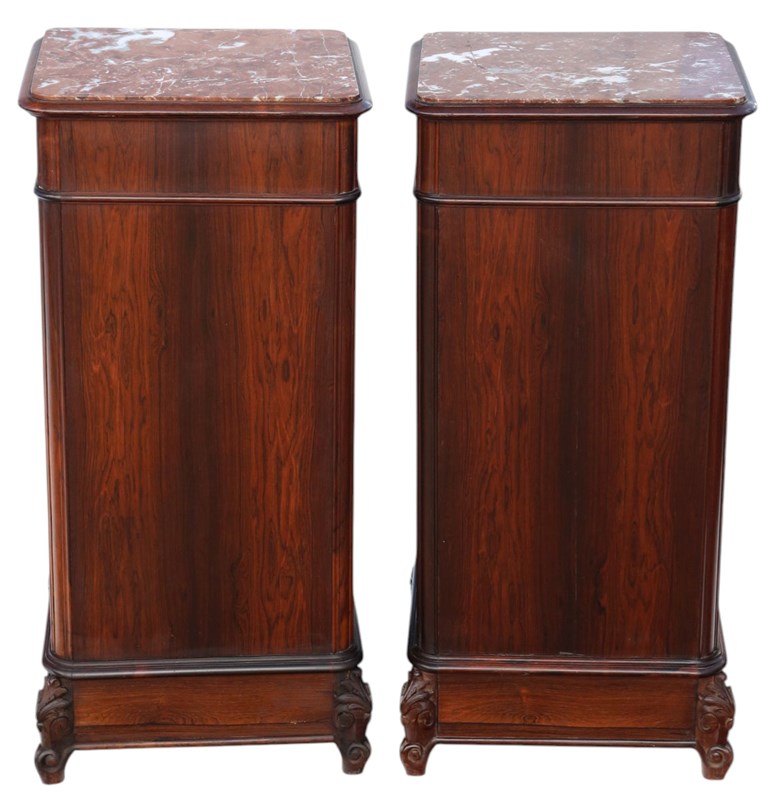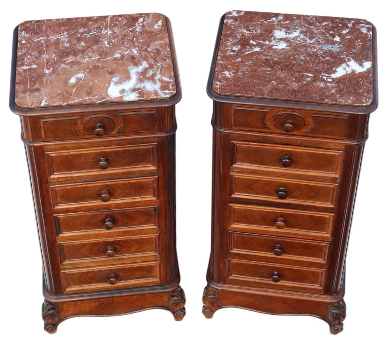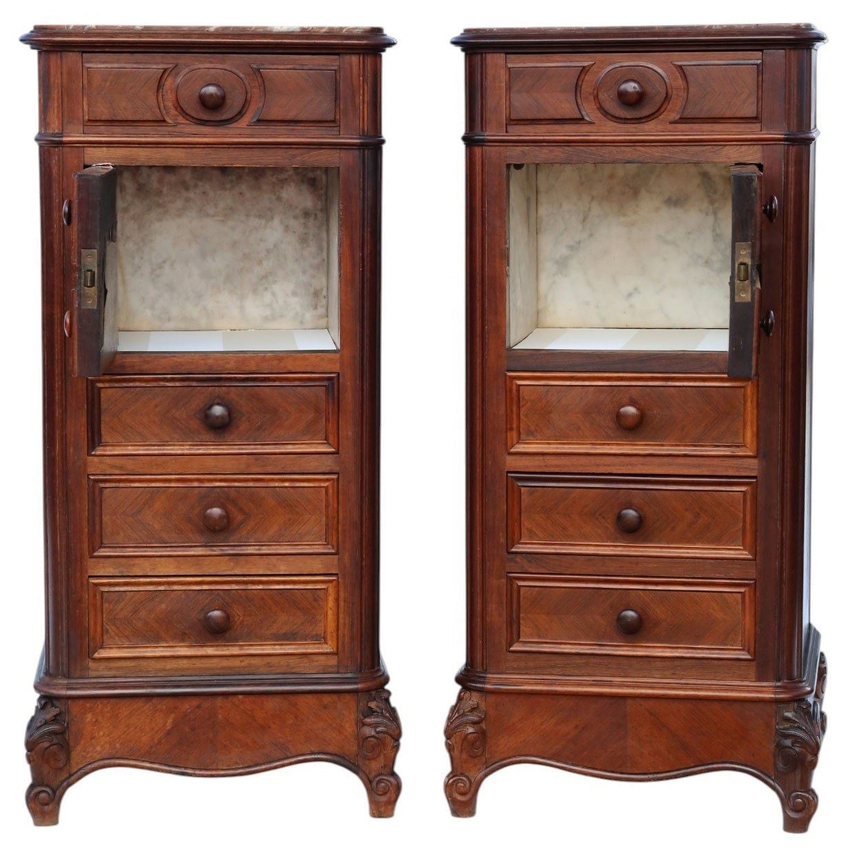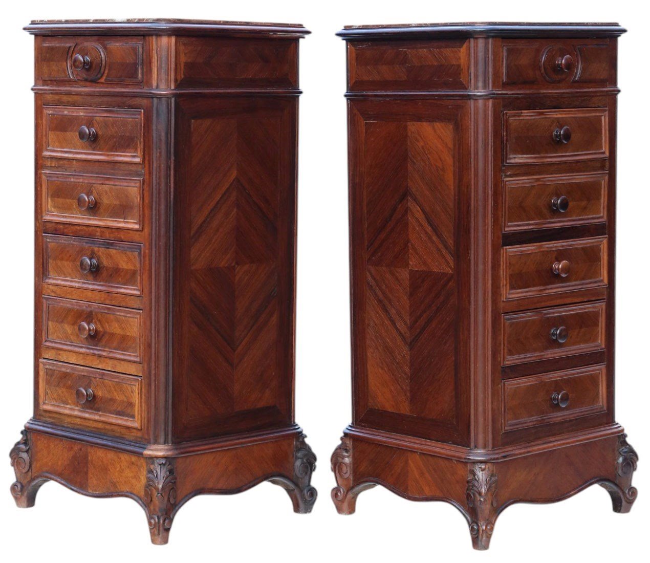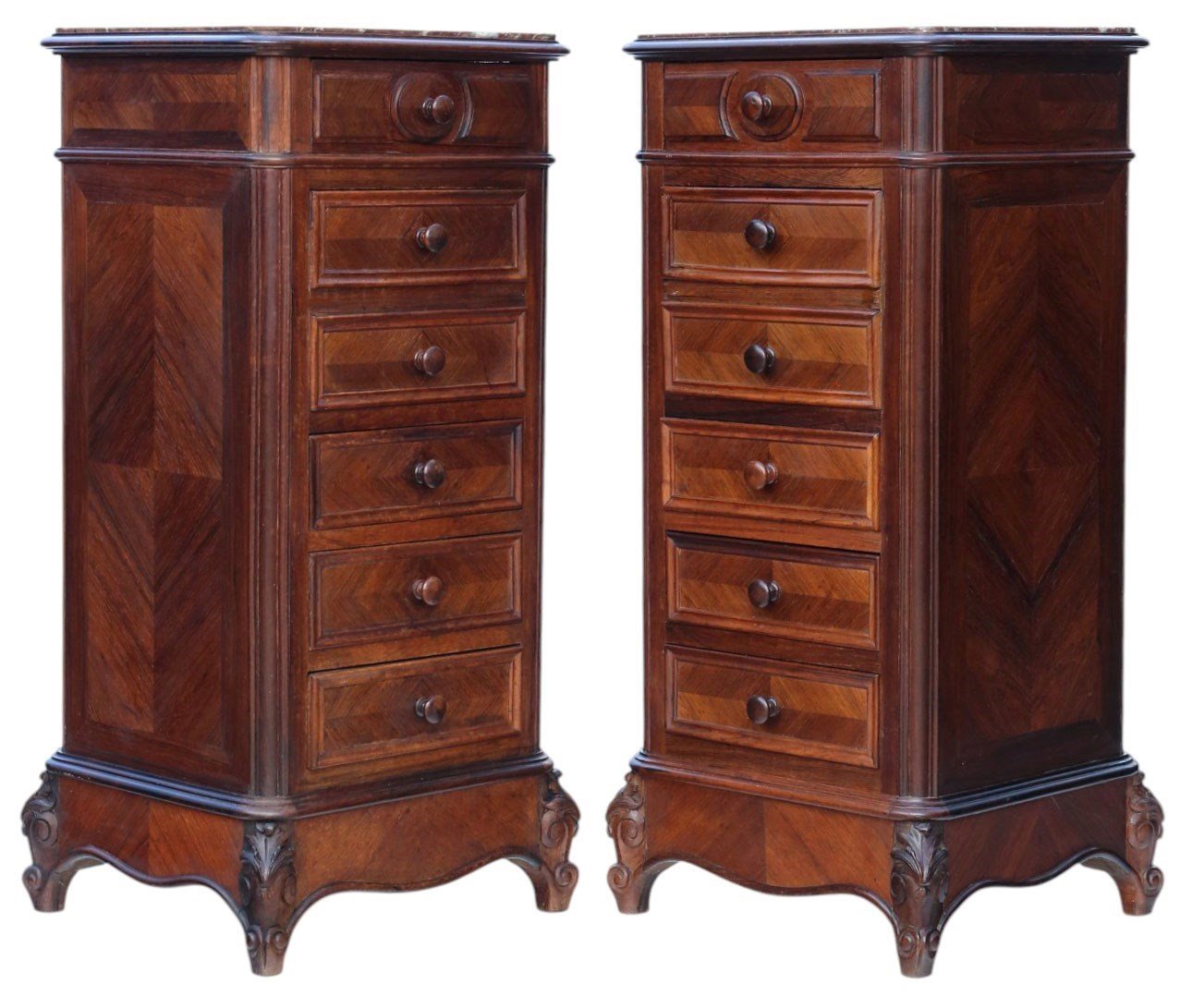 Antique C.1910 Pair Of Tall Parquetry Veneer Bedside Tables – Fine Quality Night