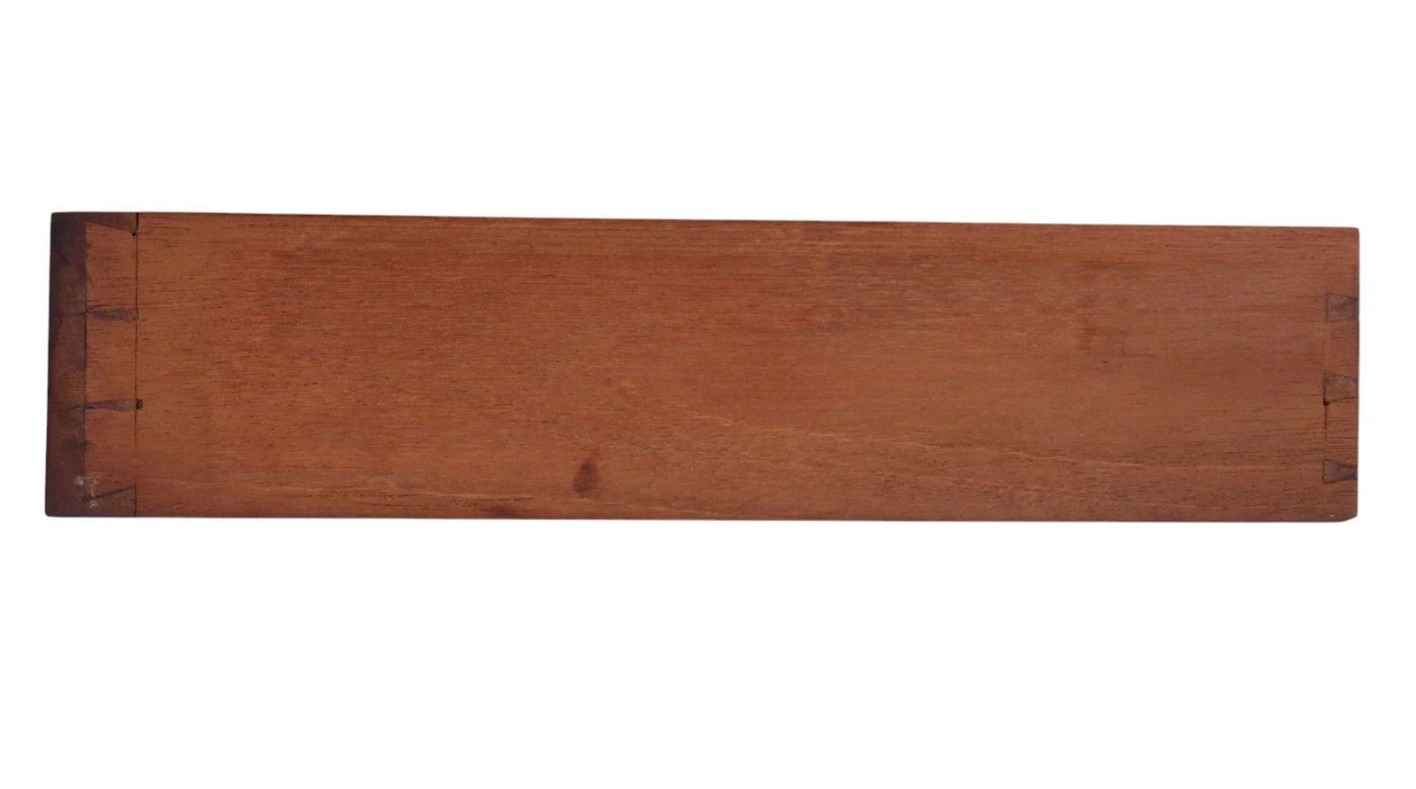 In very good antique condition, showing minor historic knocks, marks, cracks, imperfections, repairs, and alterations, consistent with genuine period use. Mahogany-lined drawers that slide freely and no evidence of woodworm.