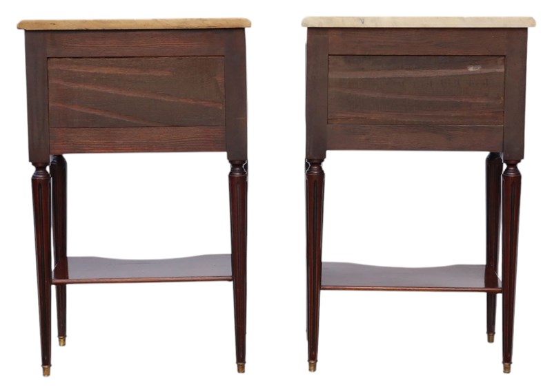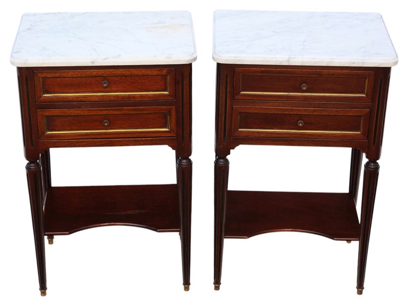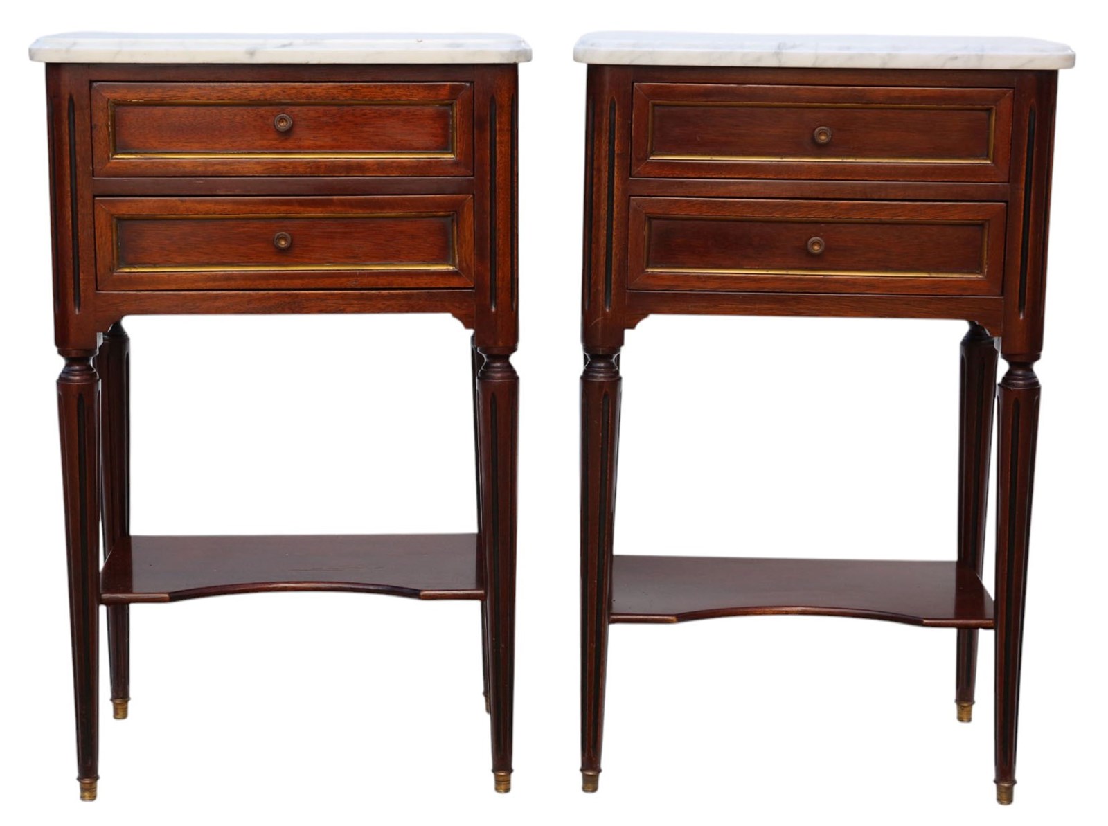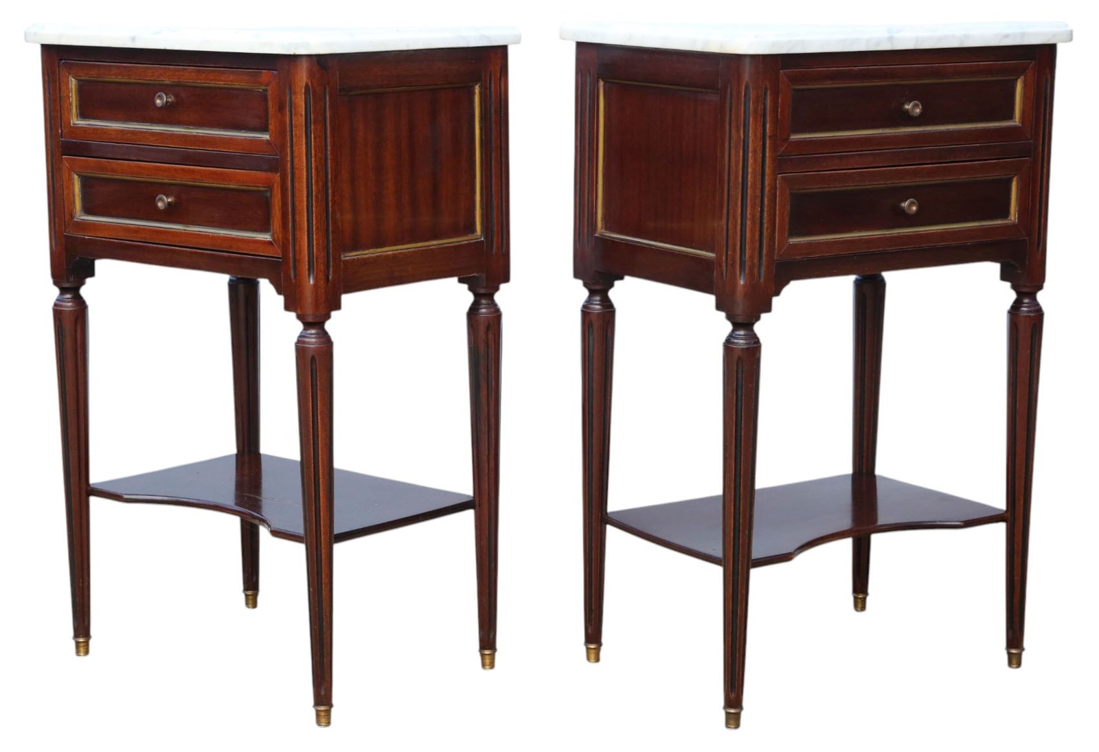 Antique c.1925 Pair of Mahogany & Marble Bedside Tables – Fine Quality Nightstands