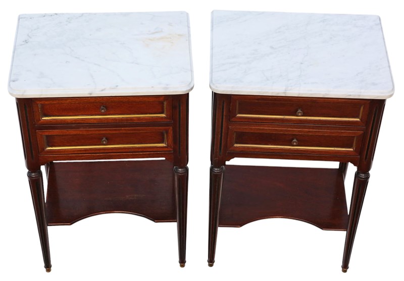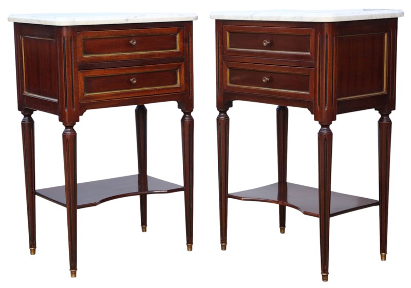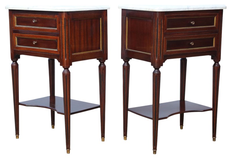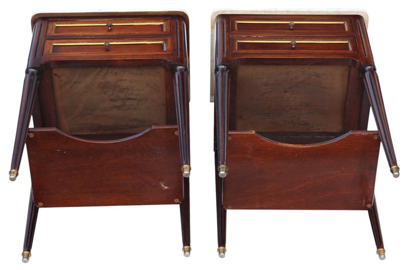 Antique C.1925 Pair Of Mahogany & Marble Bedside Tables – Fine Quality