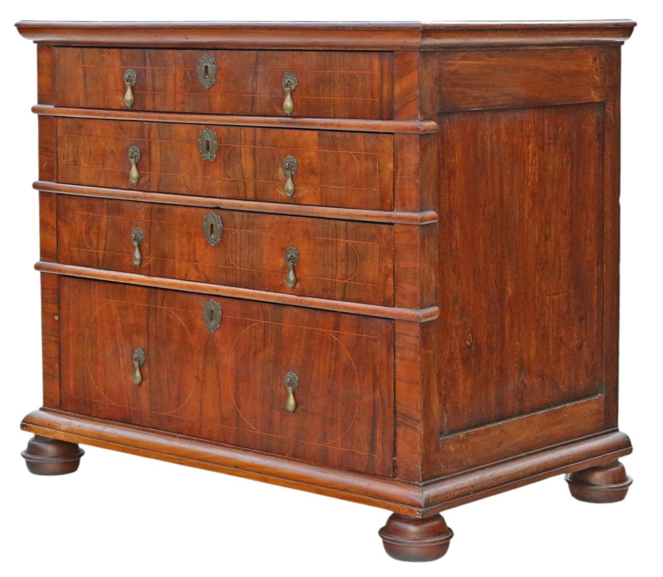 Antique Early 18th Century Georgian Inlaid Walnut Chest of Drawers – Fine Quality, c.1720