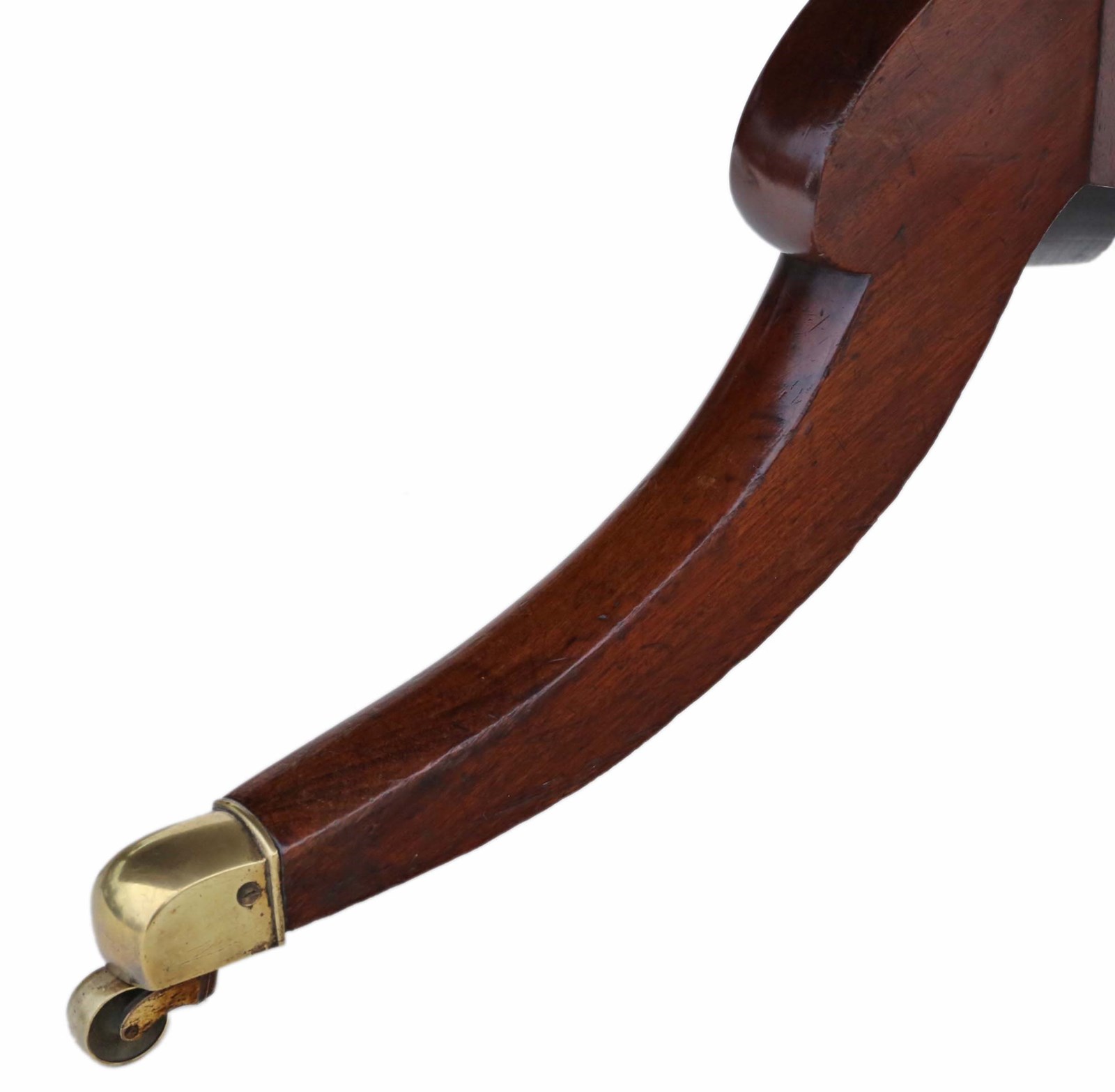 This fine-quality late 19th Century mahogany dining table has a beautiful, warm colour and stands on quality brass castors. Its finish has developed a lovely, rich patina through generations of polish and wax. This table combines practicality with decorative charm and would look stunning in the right location.