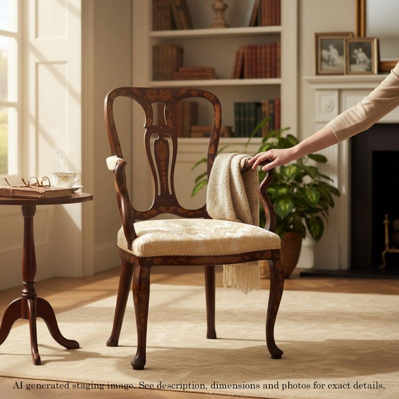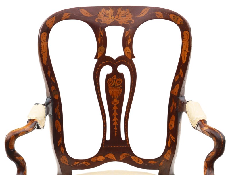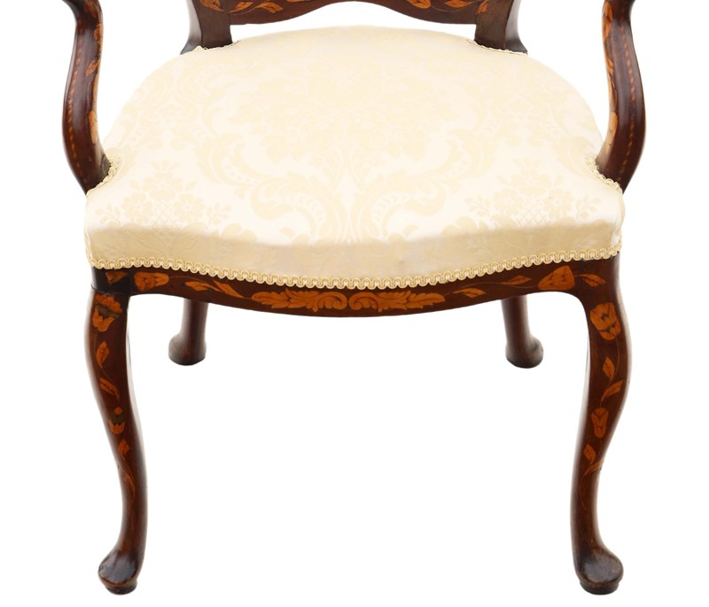 Antique Fine Quality 18Th Century Dutch Marquetry Elbow Chair Armchair