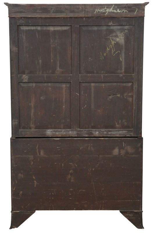 Good antique condition overall, showing expected signs of age, including historic marks, knocks, cracks, repairs, and alterations consistent with period furniture. A few historic extinct woodworm holes exist and have been treated for good measure. There are historic repairs to the bracket feet, as is common and to be expected. The drawers slide freely.