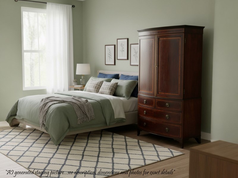 A handsome and elegant 19th-century bow-front linen press that offers both practical storage and decorative appeal.