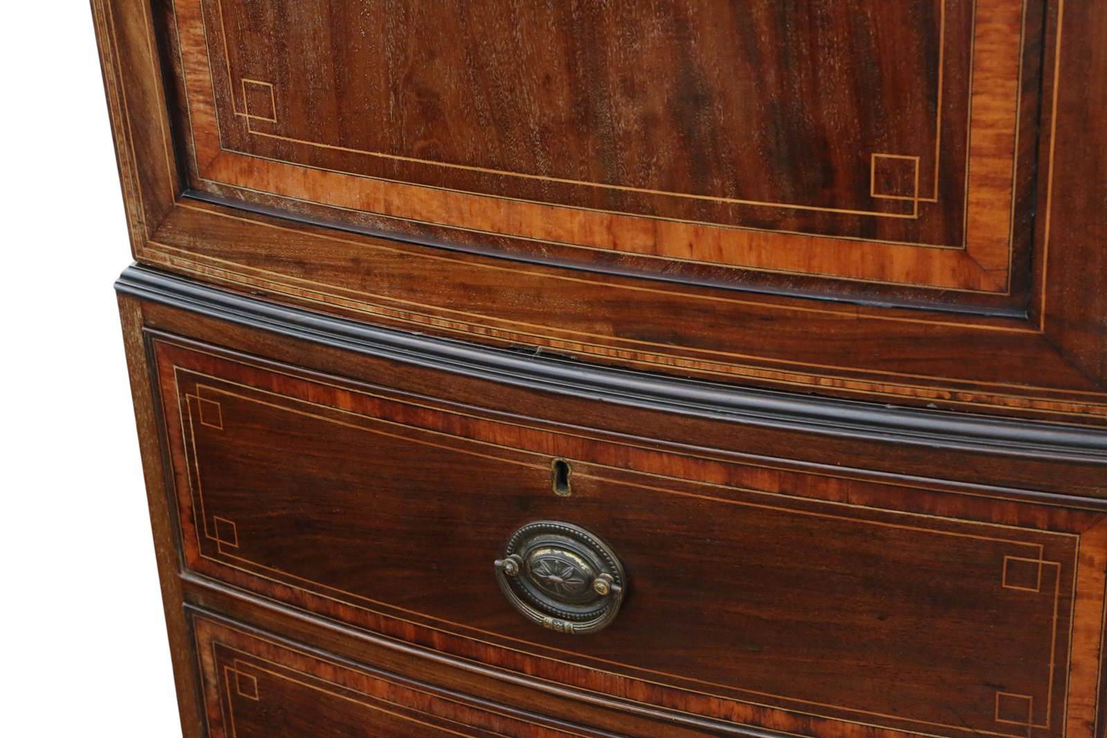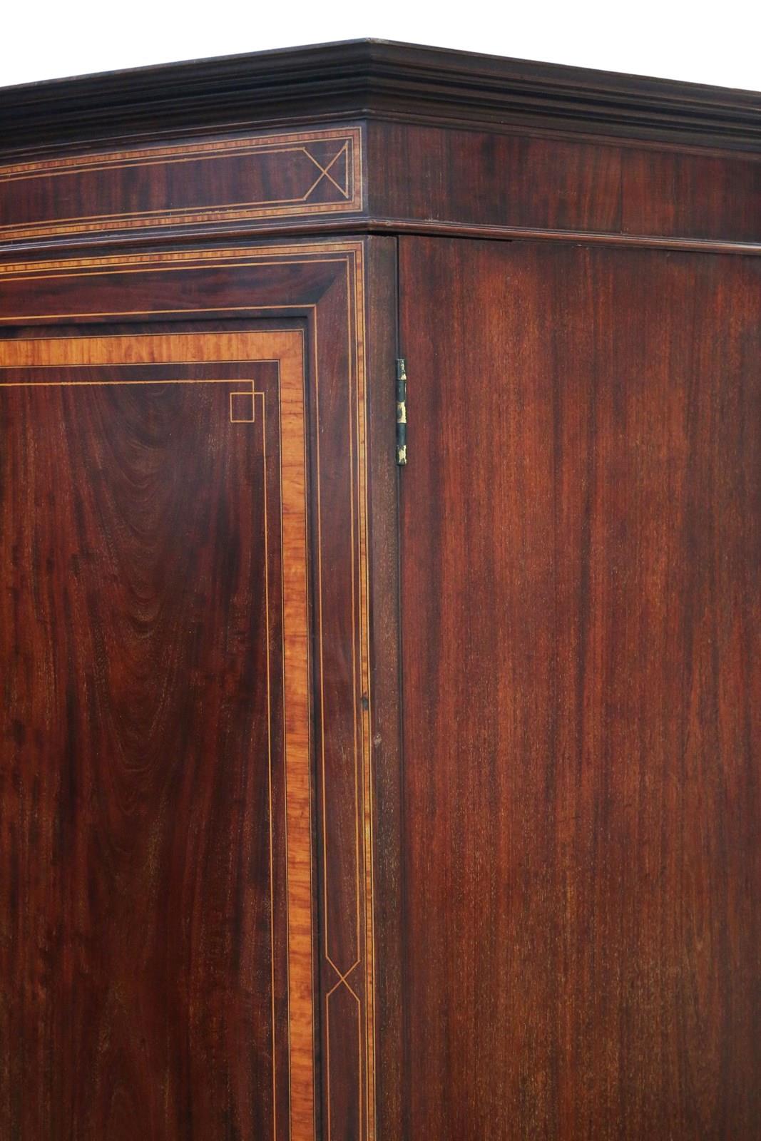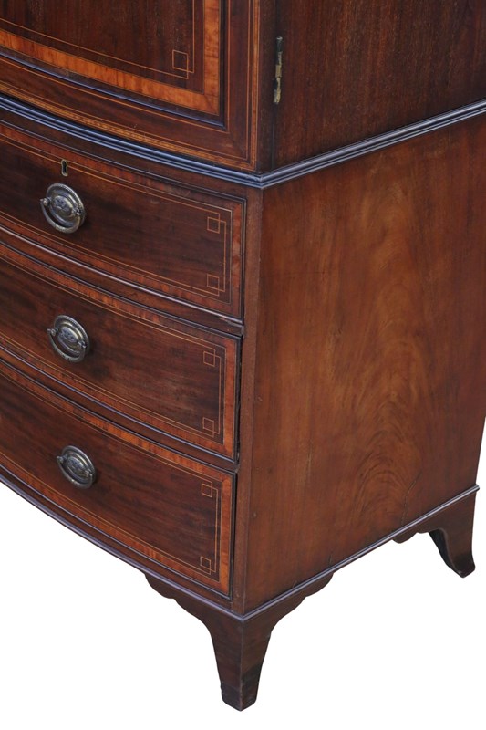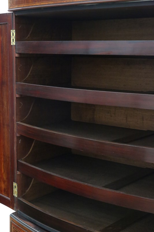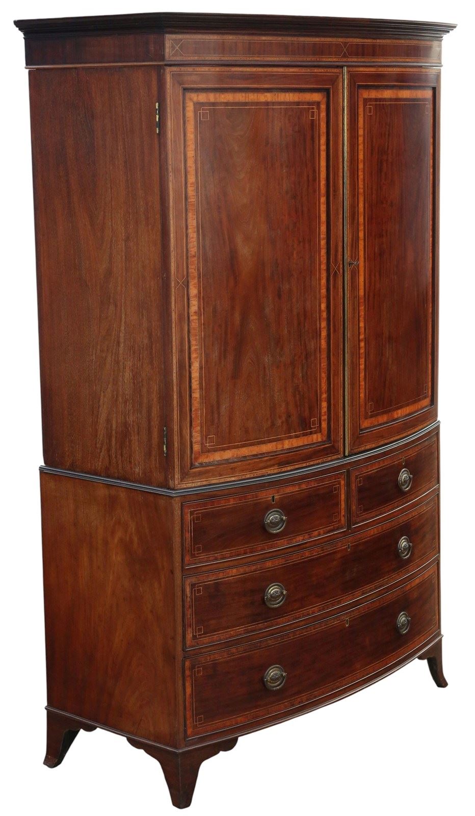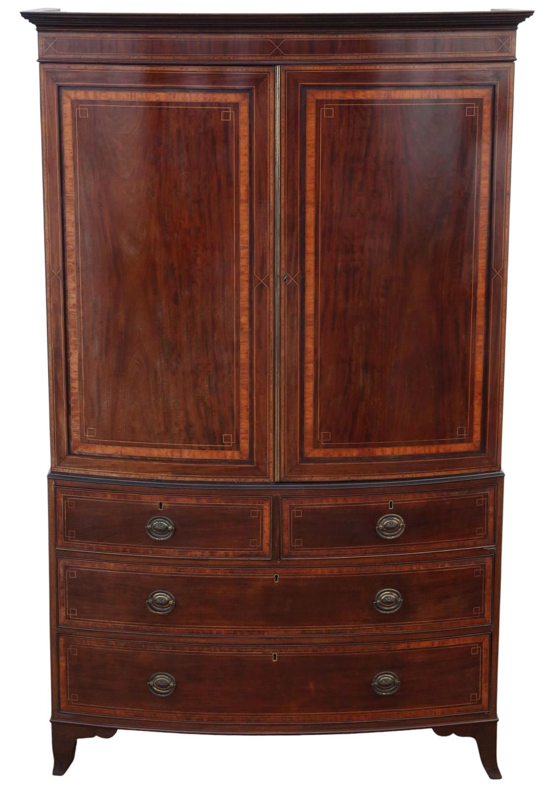 Antique Fine Quality Bow-Front Inlaid Mahogany Linen Press Cupboard / Wardrobe