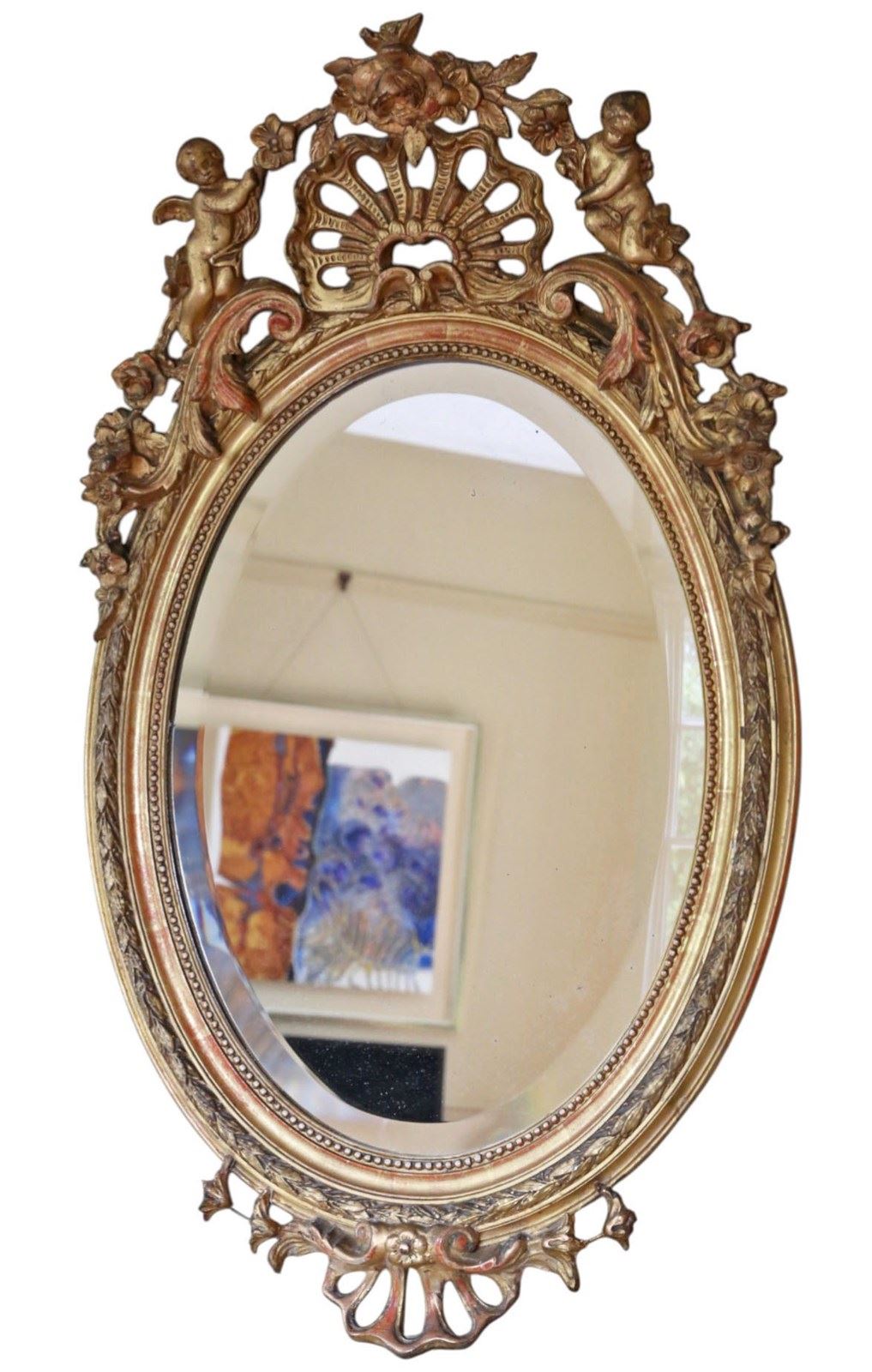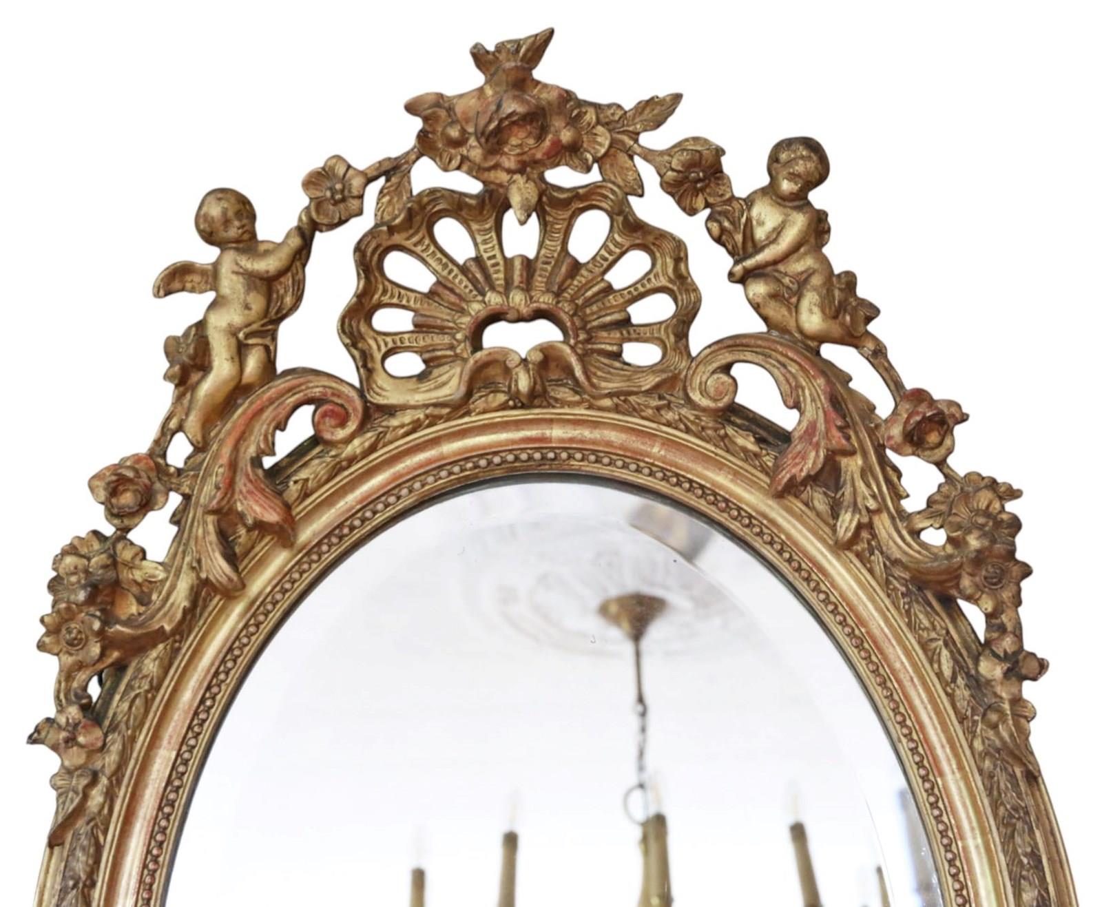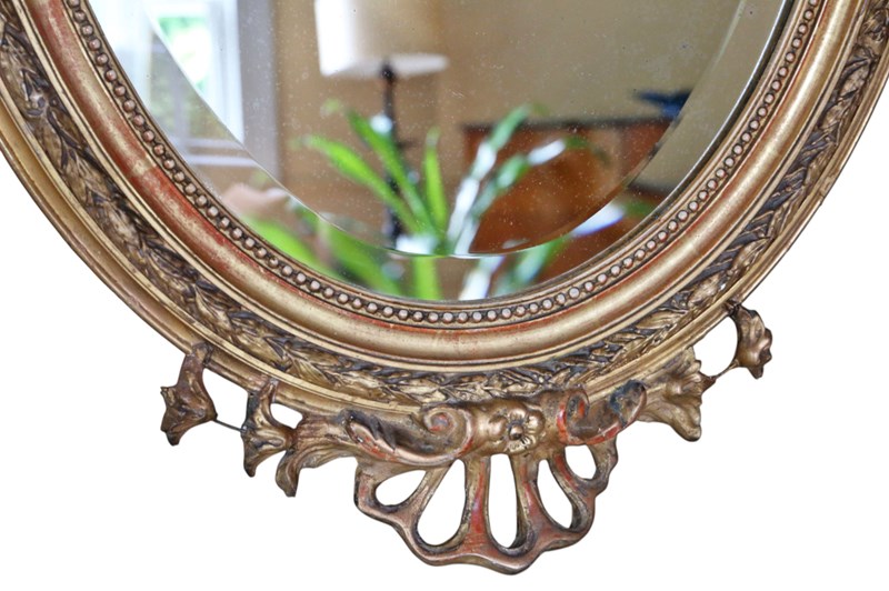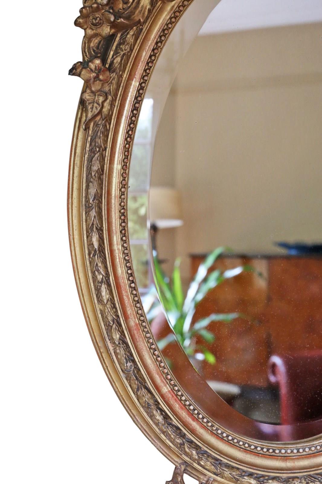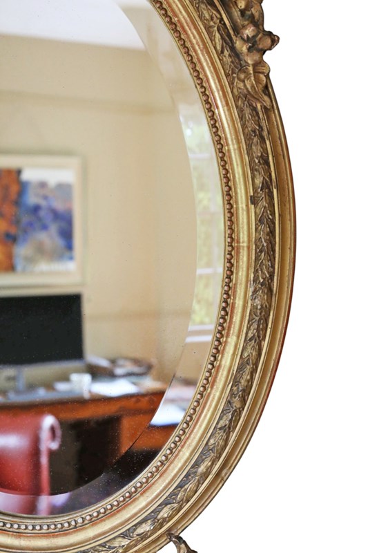 Antique Large 19Th Century Oval Gilt Overmantel Wall Mirror – High Quality