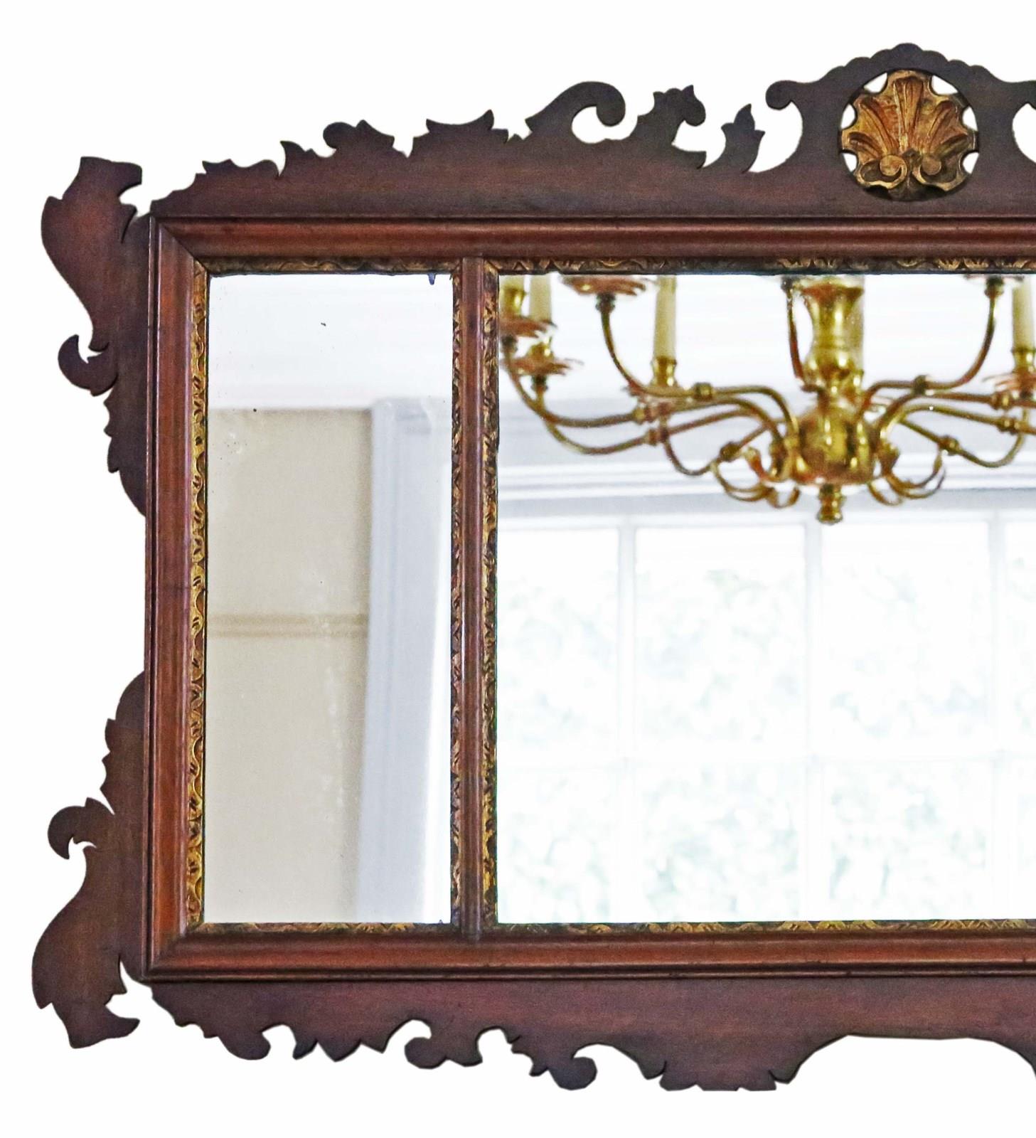 Antique Large Gilt And Mahogany C1900 Overmantle Wall Mirror Fine Quality