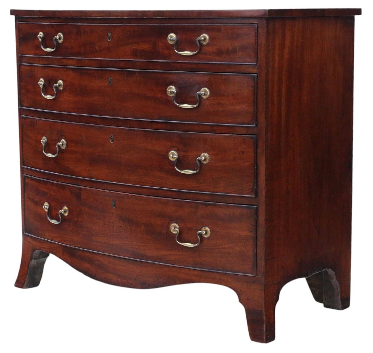 A fine opportunity to acquire an authentic late 18th to early 19th-century Georgian mahogany chest of drawers, offering timeless design, practicality, and enduring period charm.