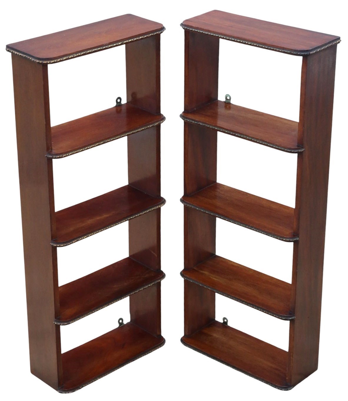 Antique Pair of c.1900 Mahogany Wall Bookcases – Quality Display Shelves
