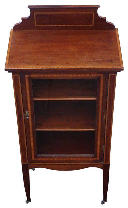 Antique Quality Edwardian c.1910 Inlaid Mahogany Display Cabinet / Bookcase