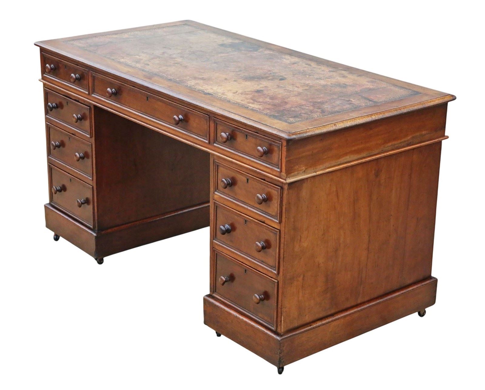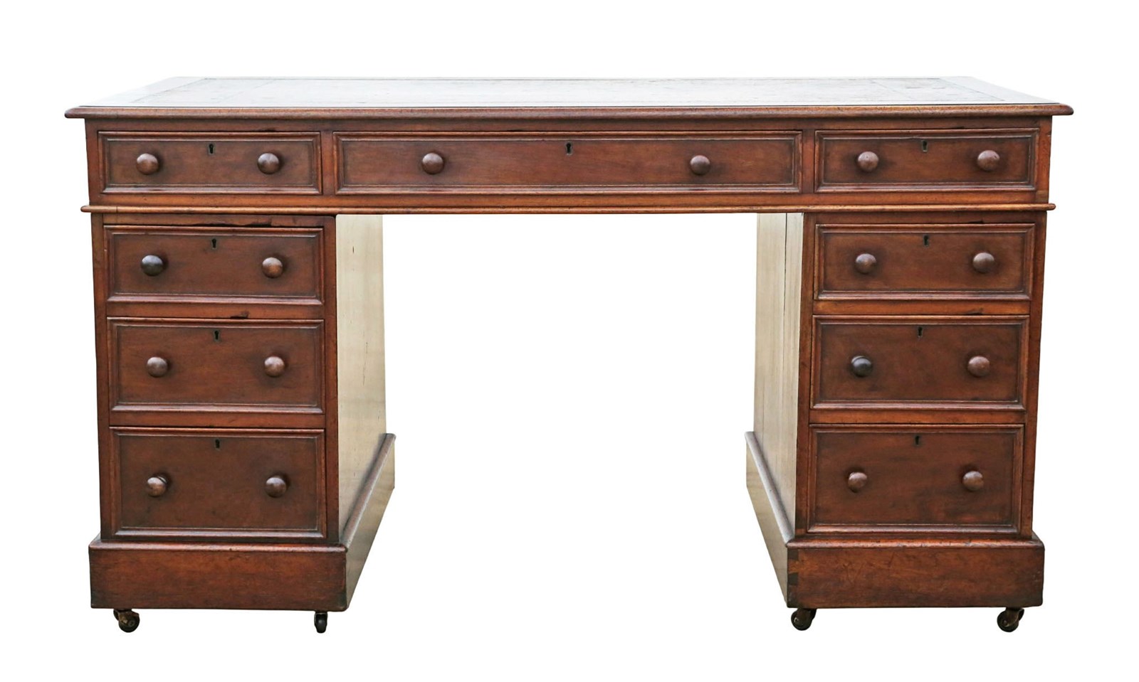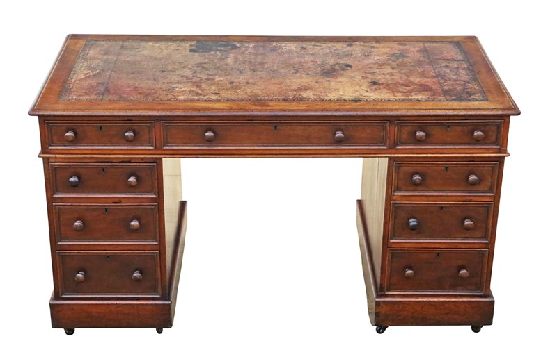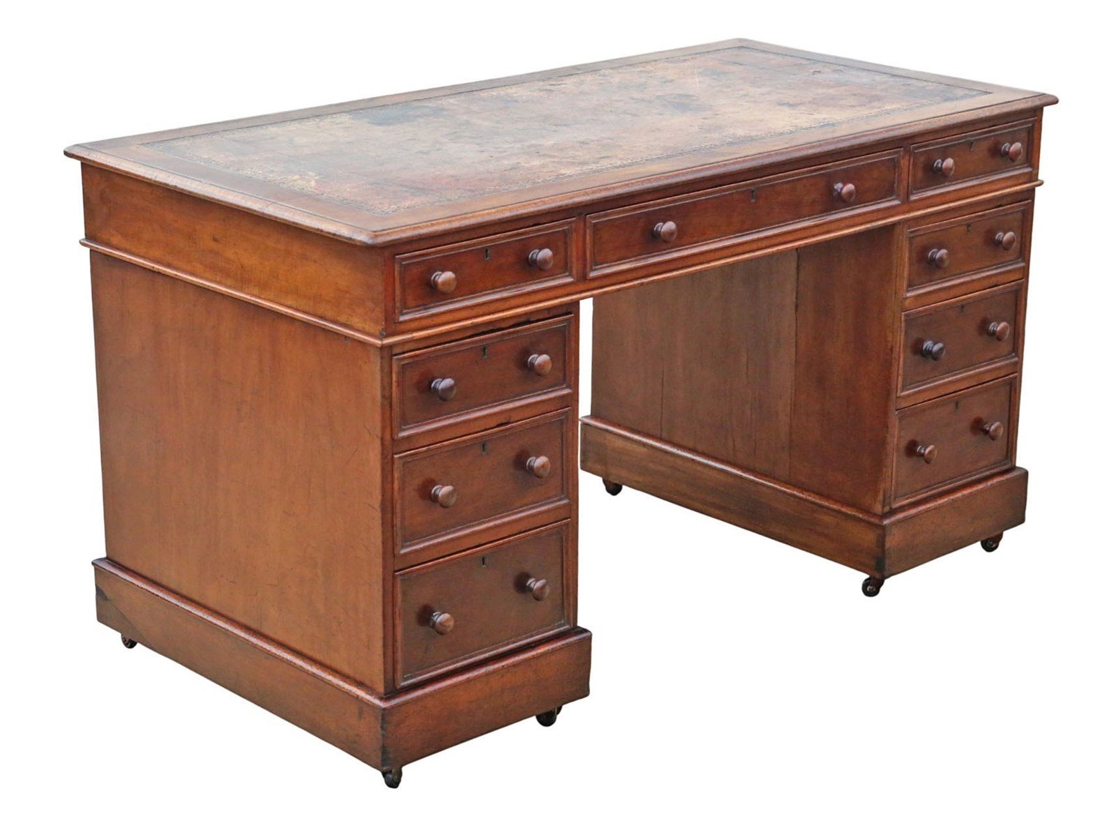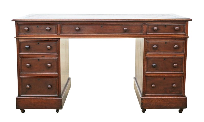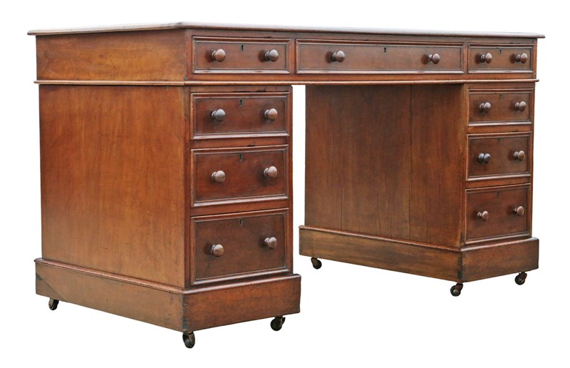 Antique Victorian C.1860 Mahogany Twin Pedestal Writing Desk – Quality Furniture