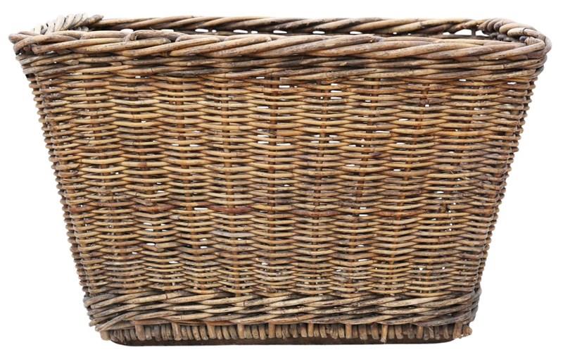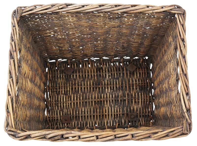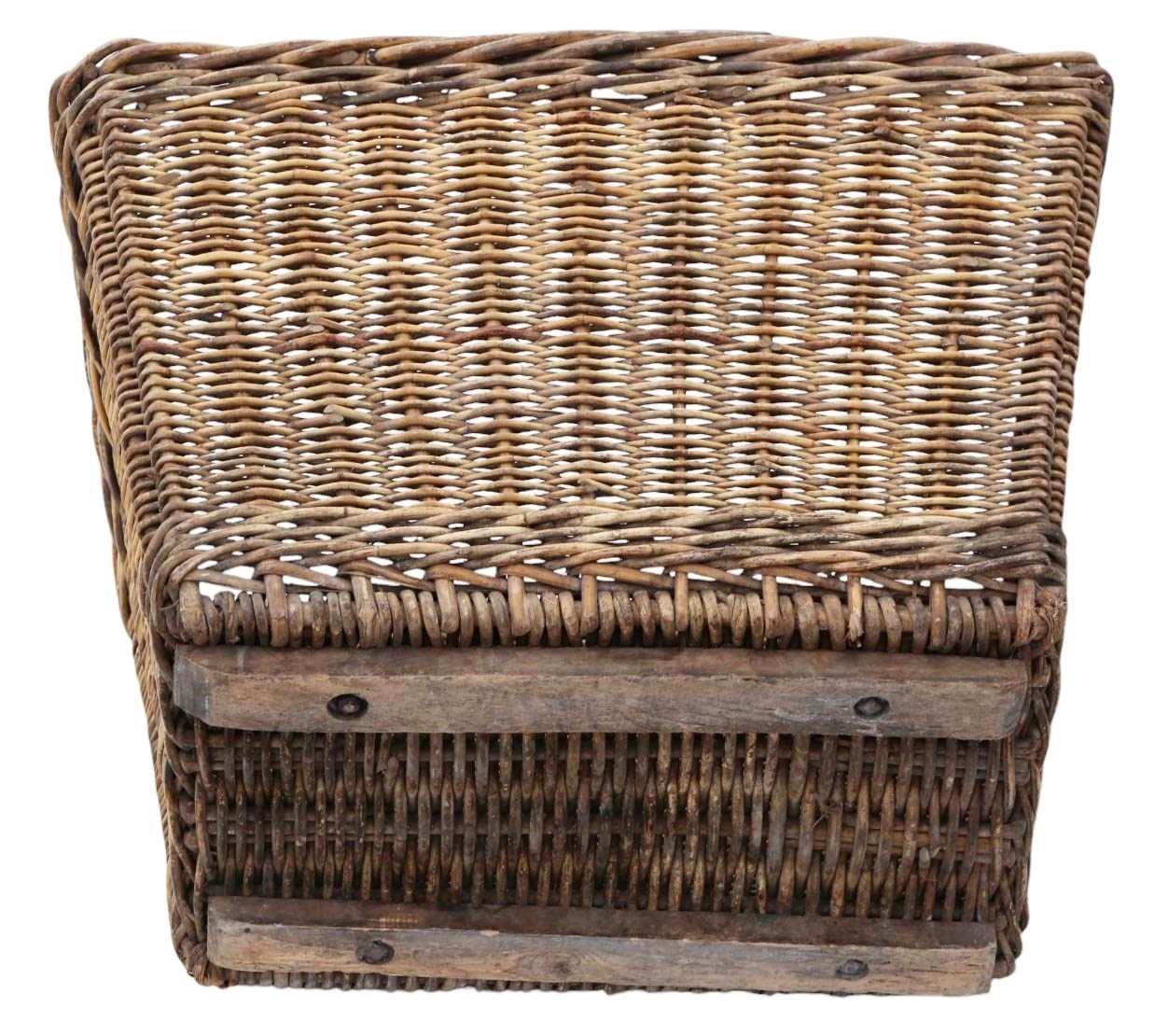 In good antique/vintage condition, the basket shows minor historic knocks, marks, cracks, scratches, wear, and imperfections—typical for an item of its age. There are also some historic extinct woodworm holes in the wooden rails on the underside, which have been treated for peace of mind.