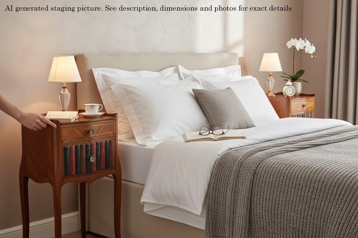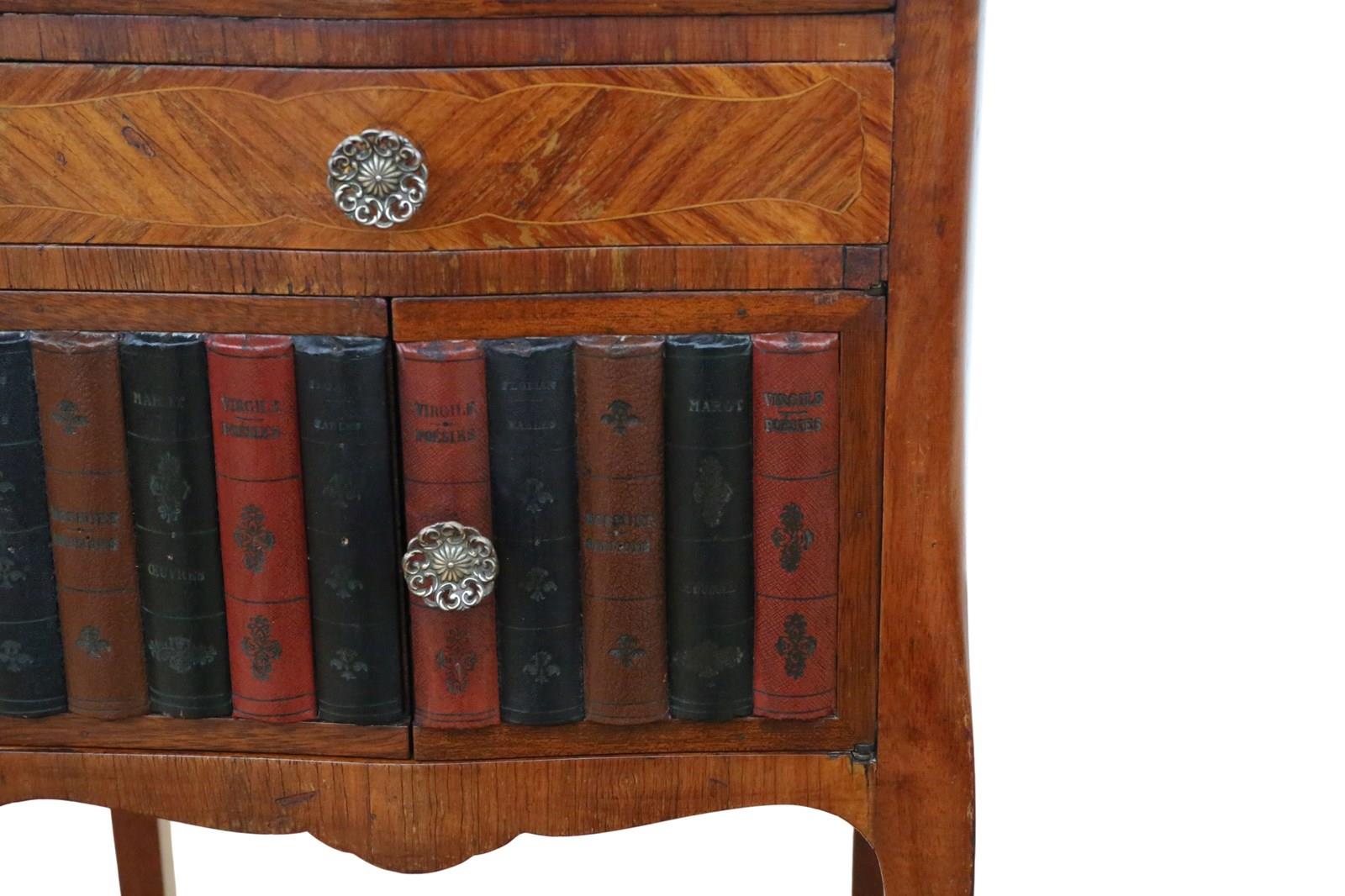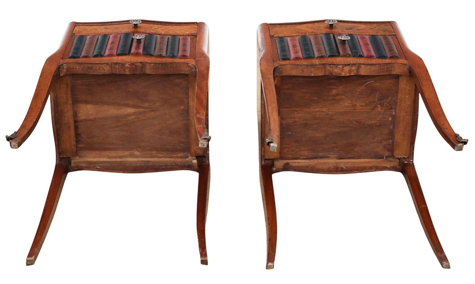 Antique Vintage Retro c.1930 Early 20th Century French Pair of Parquetry Bedside Tables / Nightstands – Multicoloured Book Facades, Fine Quality