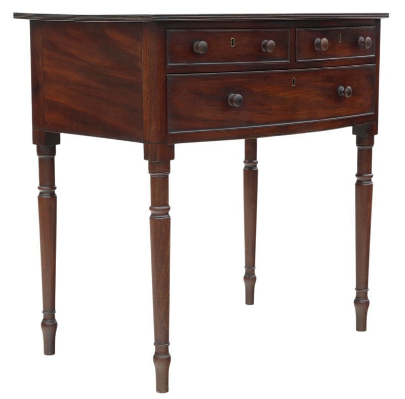 Fine Quality Antique 19Th Century Georgian Bow-Front Mahogany Writing Table