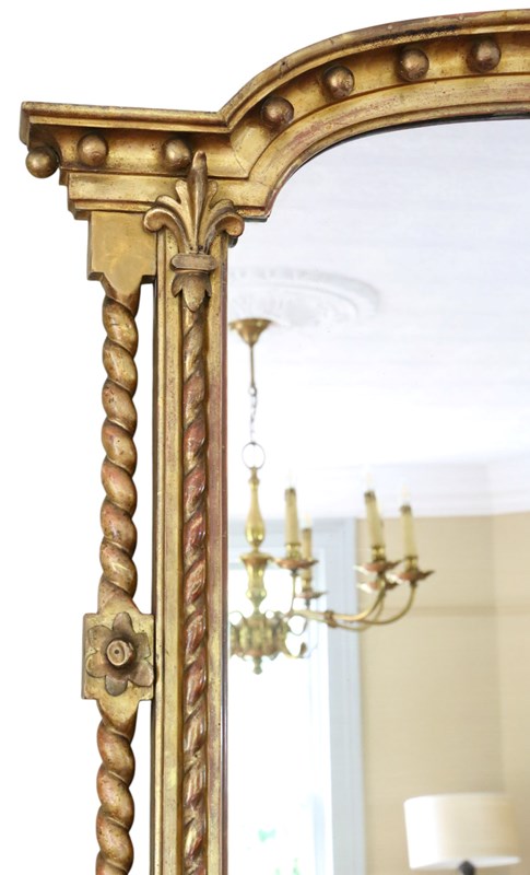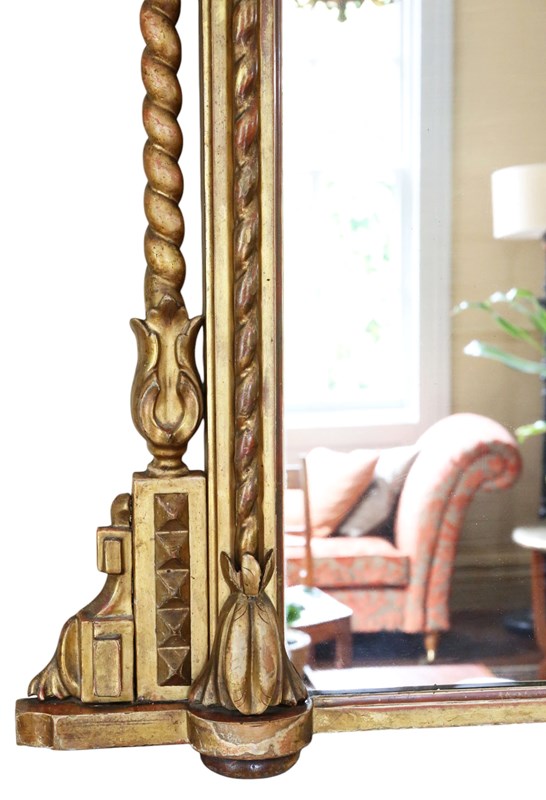 Large 19th Century Antique Giltwood Overmantel or Wall Mirror – Ornate Gold Statement Frame