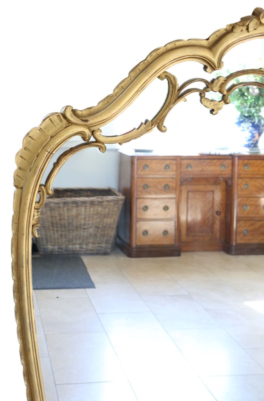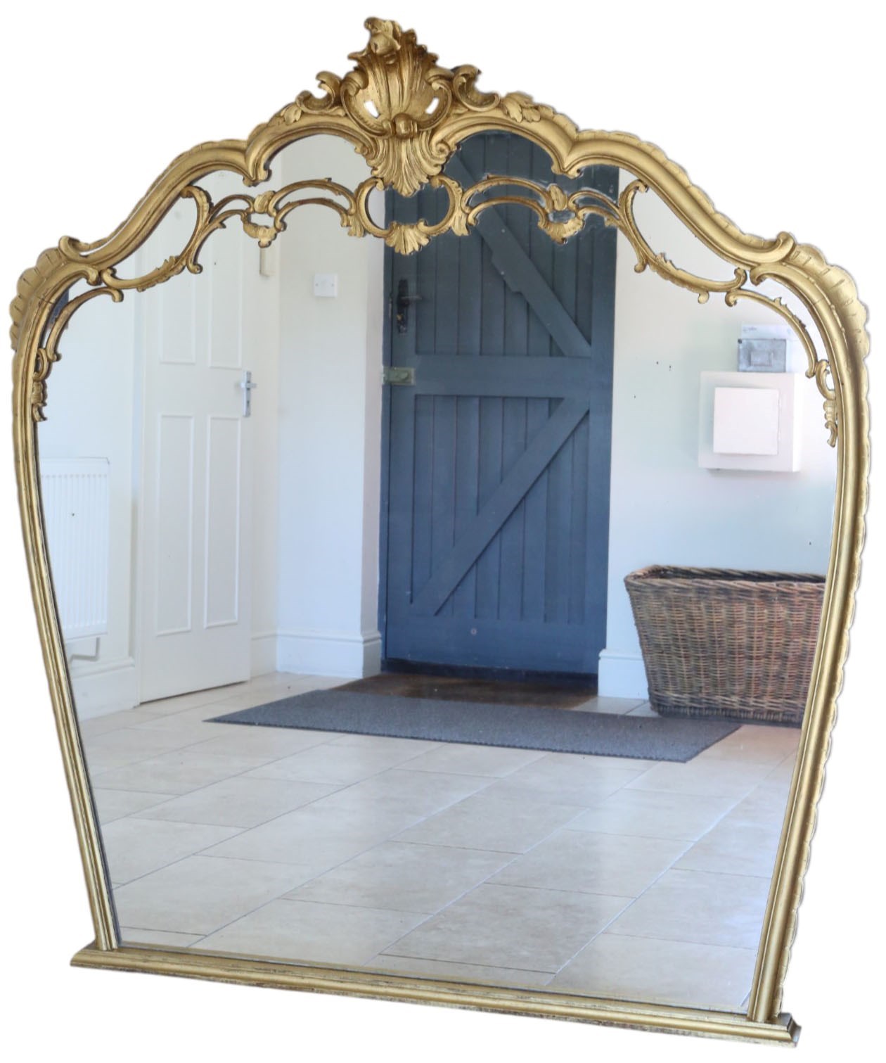 Large C1920 Antique Giltwood Overmantel Wall Mirror – Ornate Gold Frame