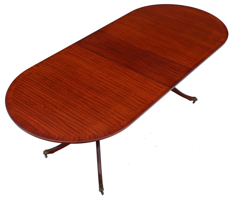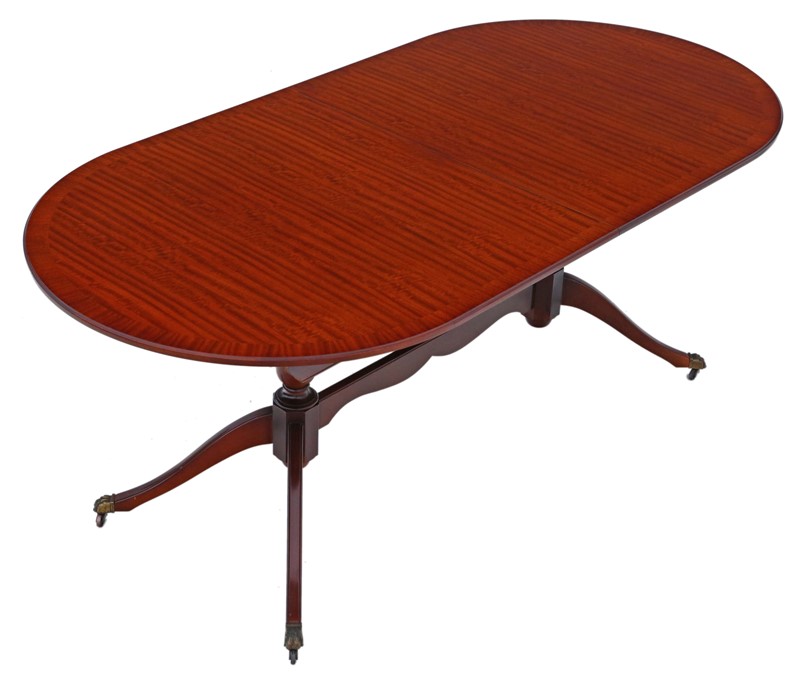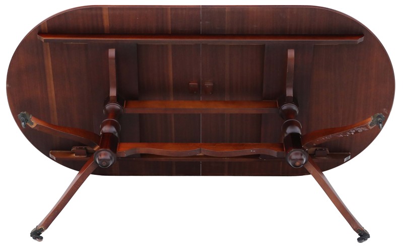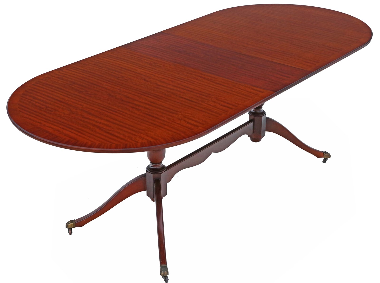 Retro Vintage large quality ~7' mahogany extending dining table double pedestal, approximately 50 years old. A lovely quality dining table. The table is in very good condition with no major knocks or marks. Solid, strong and has no loose joints or woodworm. Would look amazing in the right location! Overall maximum dimensions: 213cmL (including a 30cm removable leaf) x 91.5cmW x 74cmH. The removable leaf is slightly darker than the rest of the top as it has lived it's life in a cupboard and not been used. Stock No. 8250b. 30-day no-quibble money-back guarantee. Competitive UK and overseas door to door shipping.