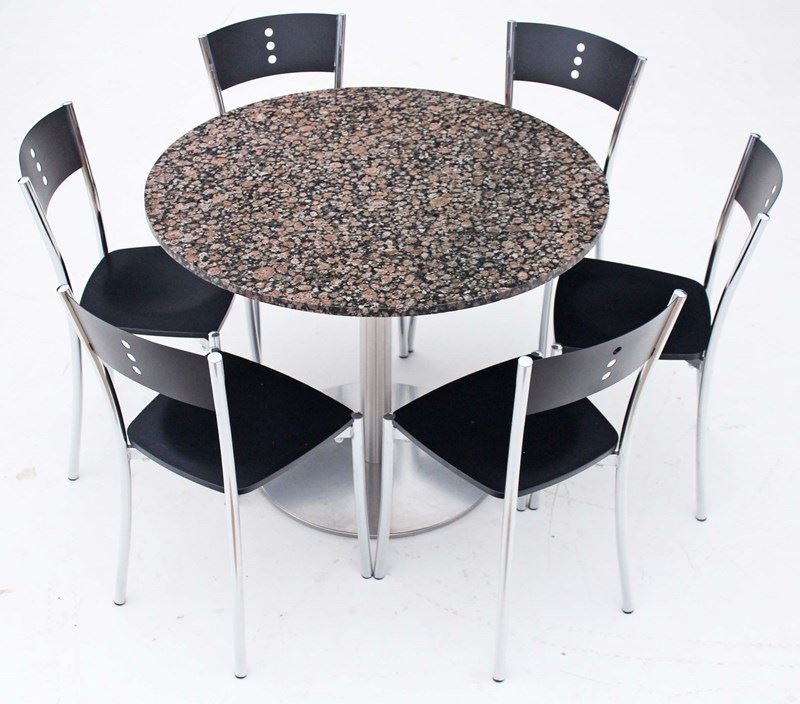 Retro Vintage Granite Table And 6 Chrome Black Dining Bistro Kitchen Chairs