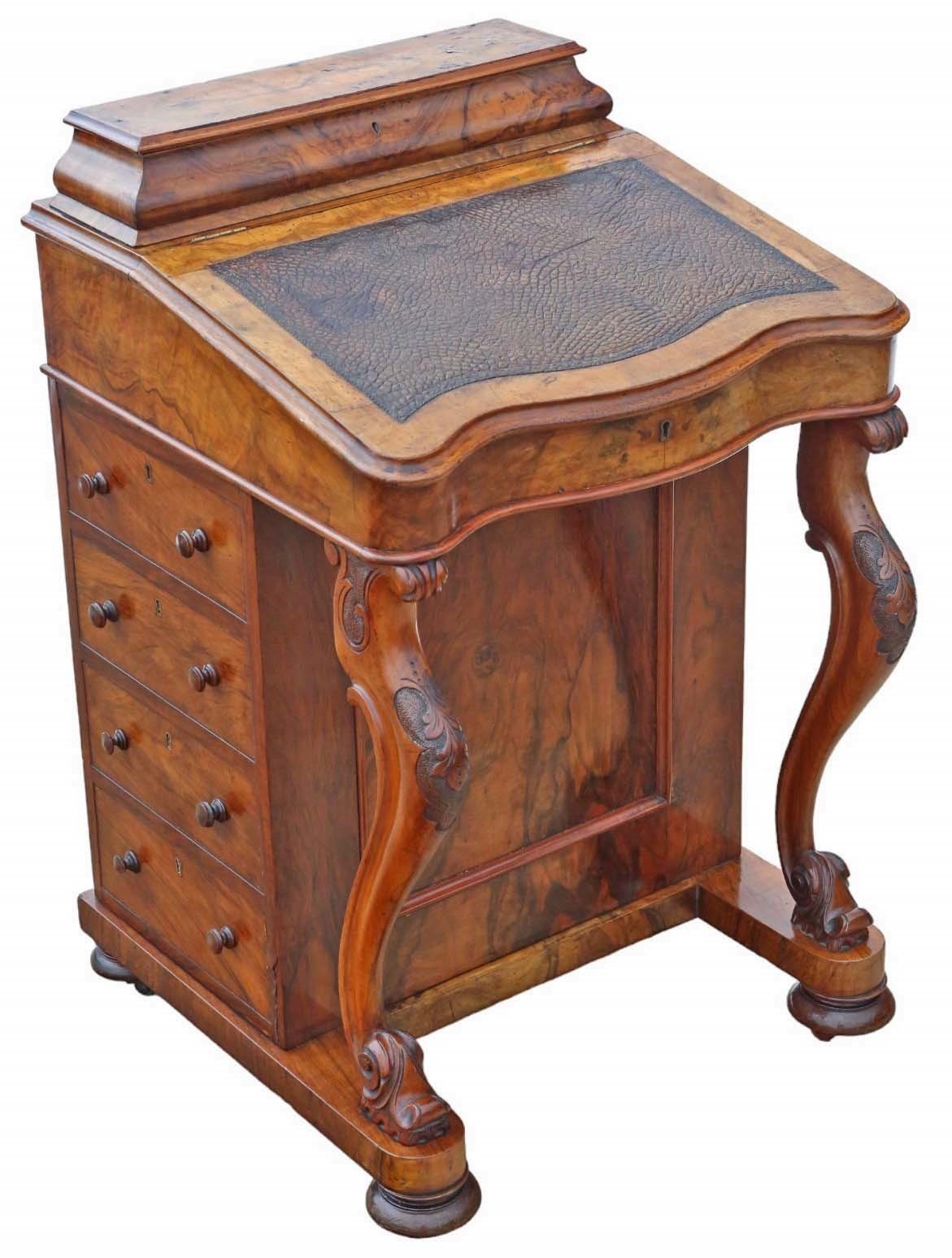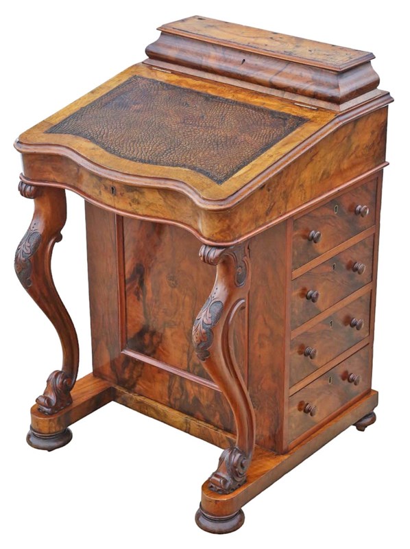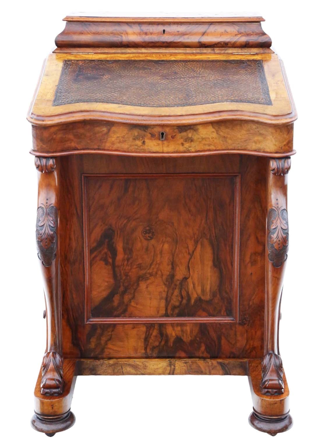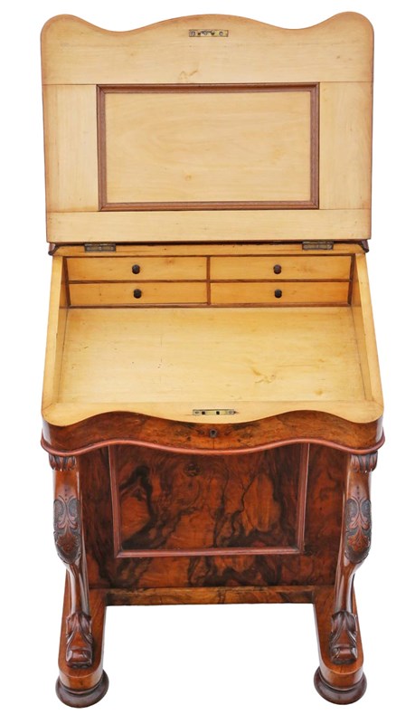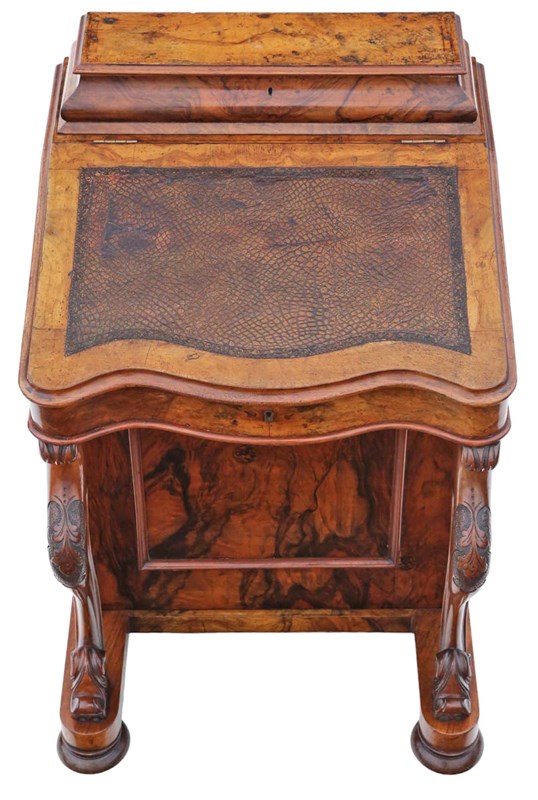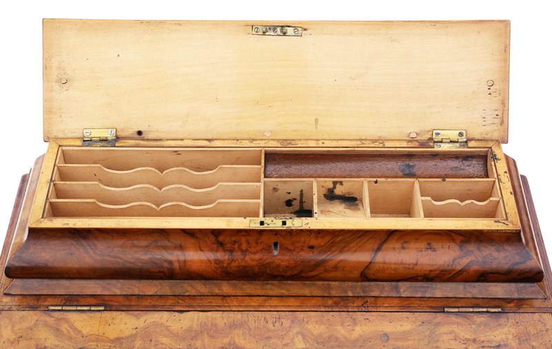 Victorian Burr Walnut Davenport Writing Table Desk - C. 1870