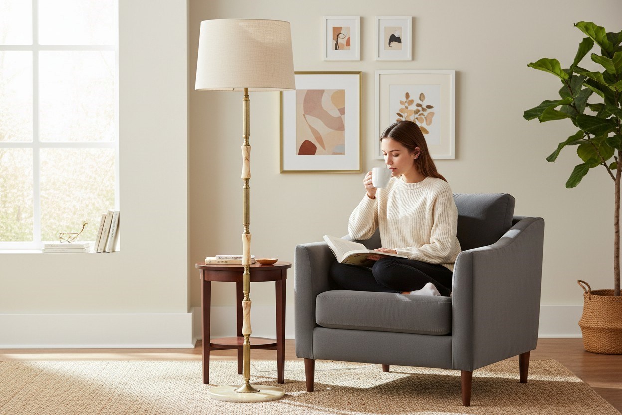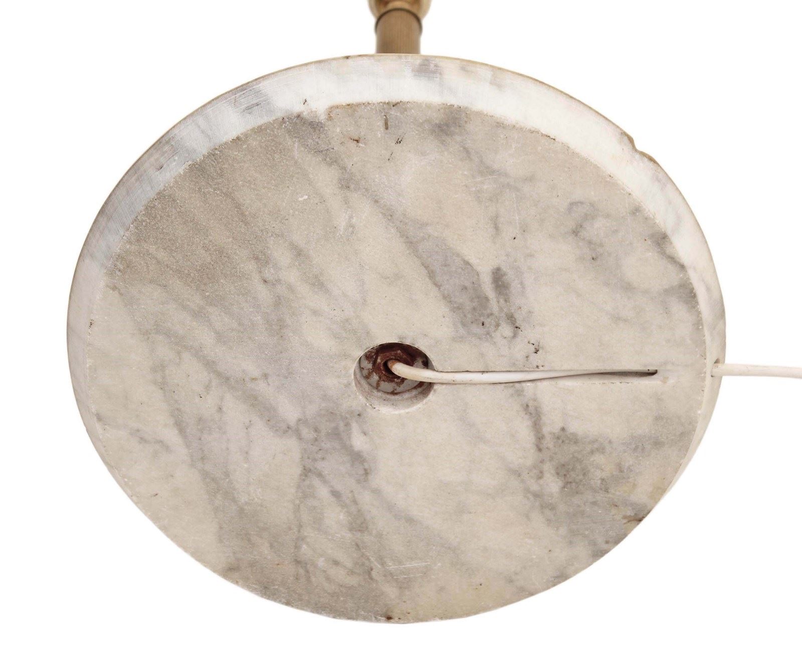 A decorative and substantial standard lamp, combining classic materials with timeless mid-century style.