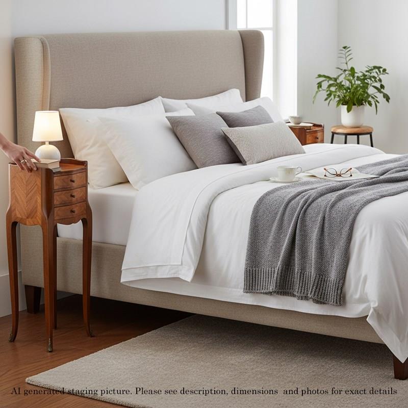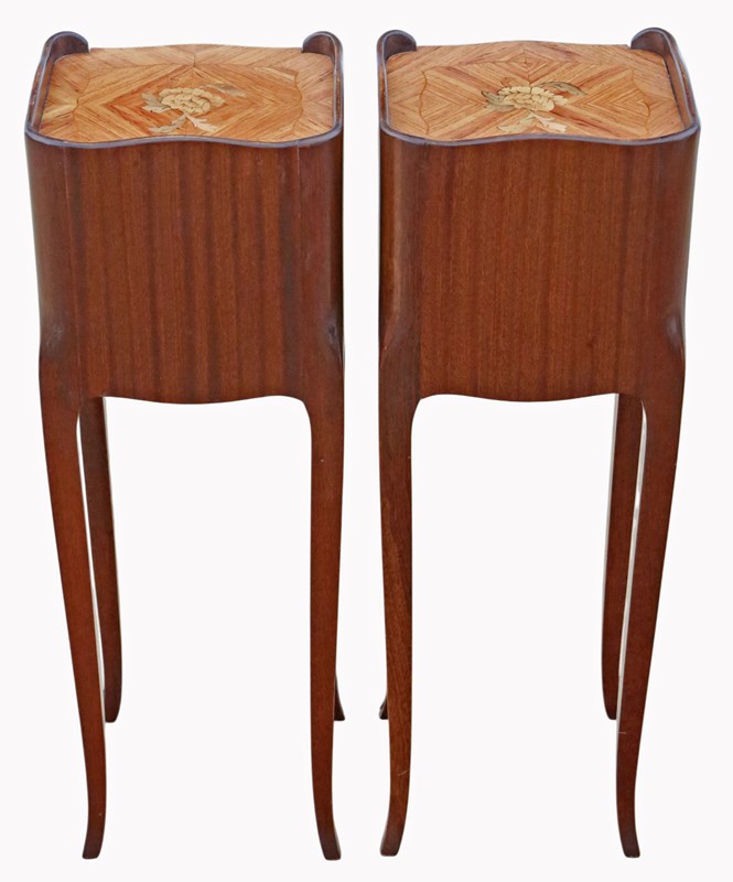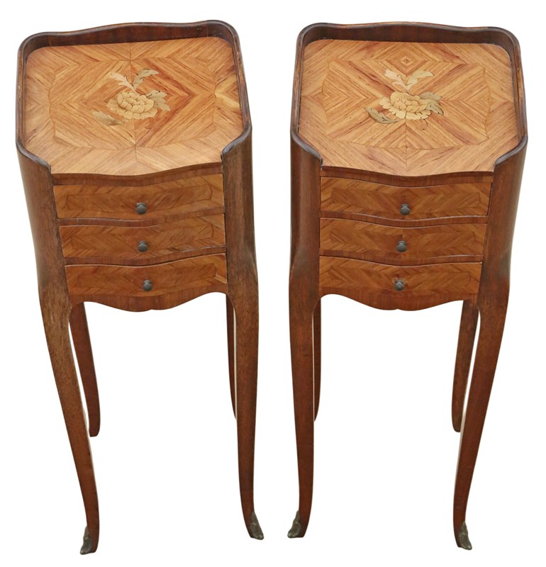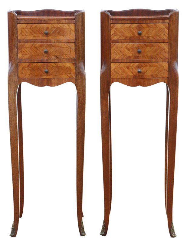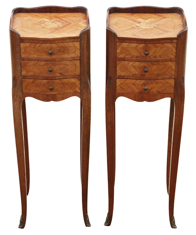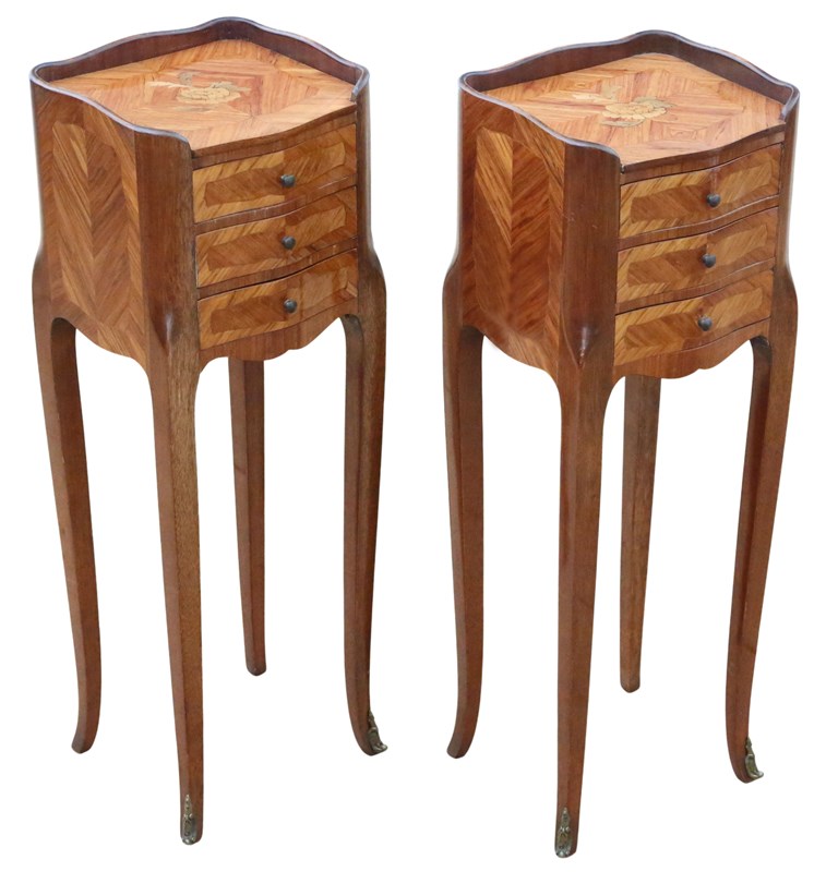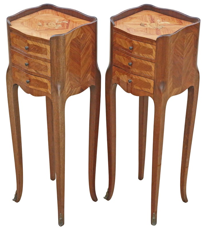 A stylish and versatile pair of French bedside tables that combine beauty, quality, and practicality in a compact form