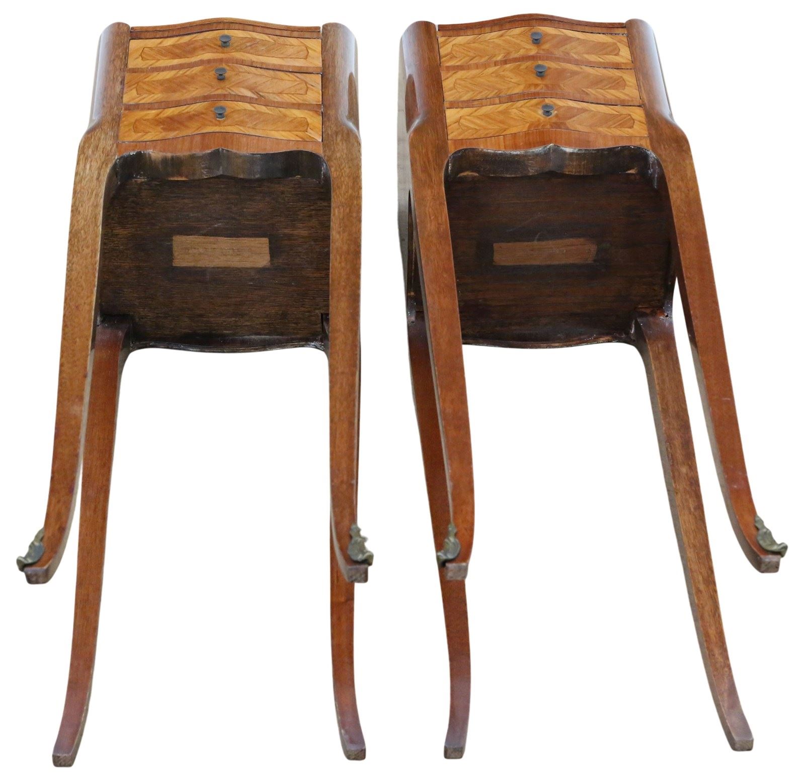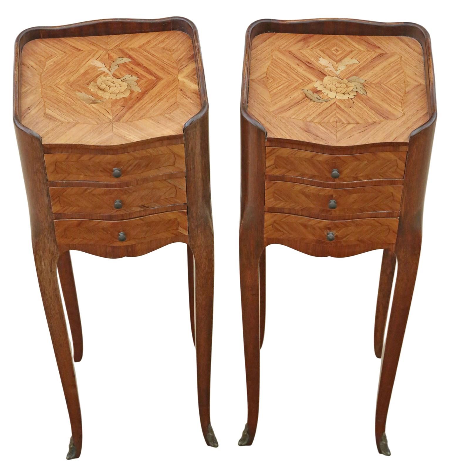 Vintage Retro French Pair Of Marquetry / Parquetry Bedside Tables – Mid-20Th C.