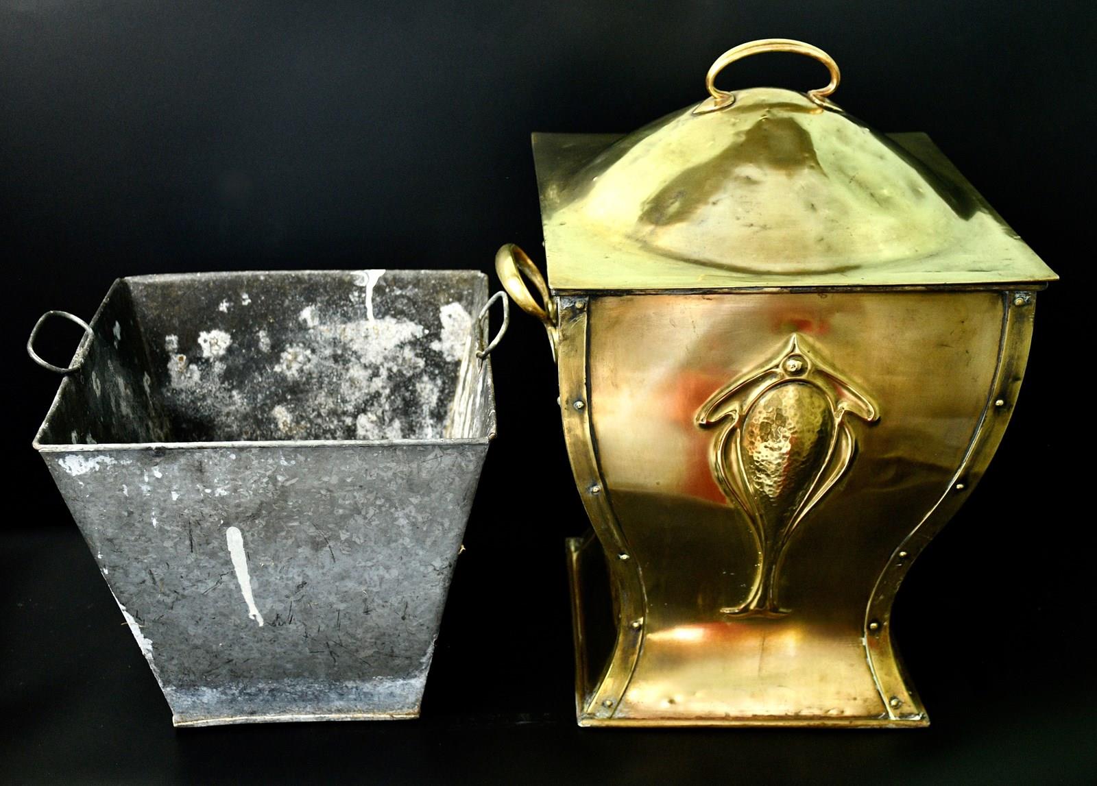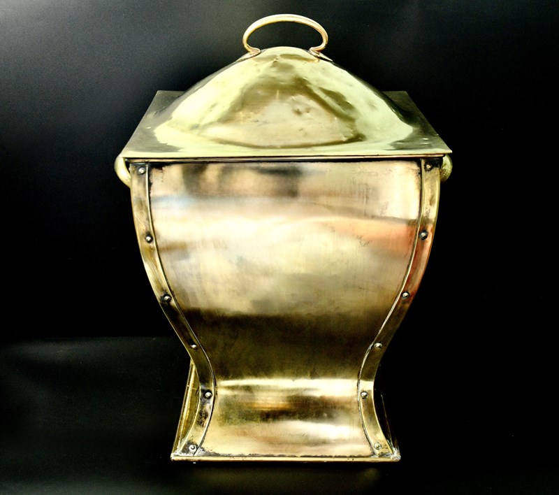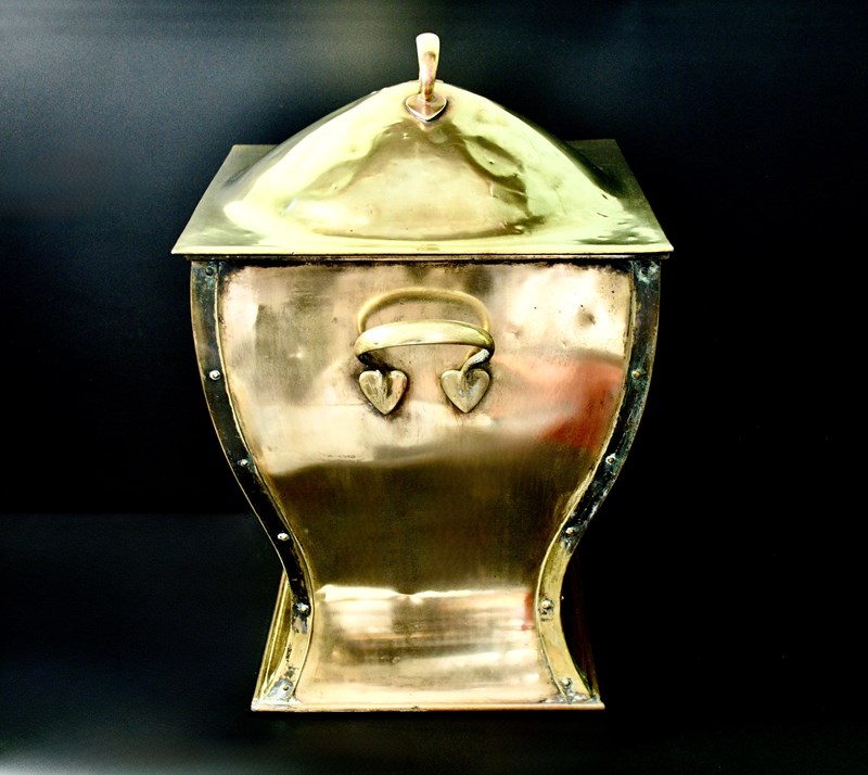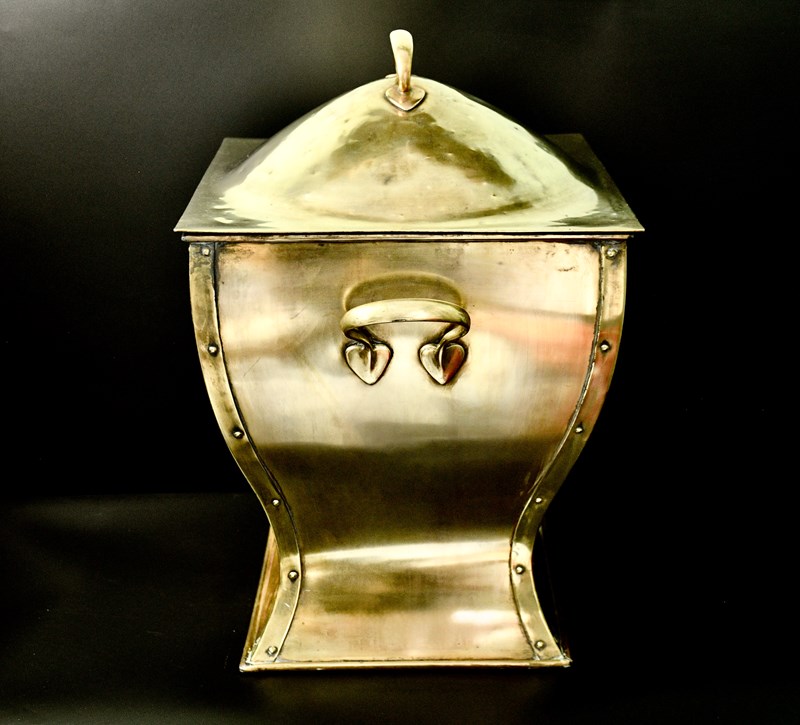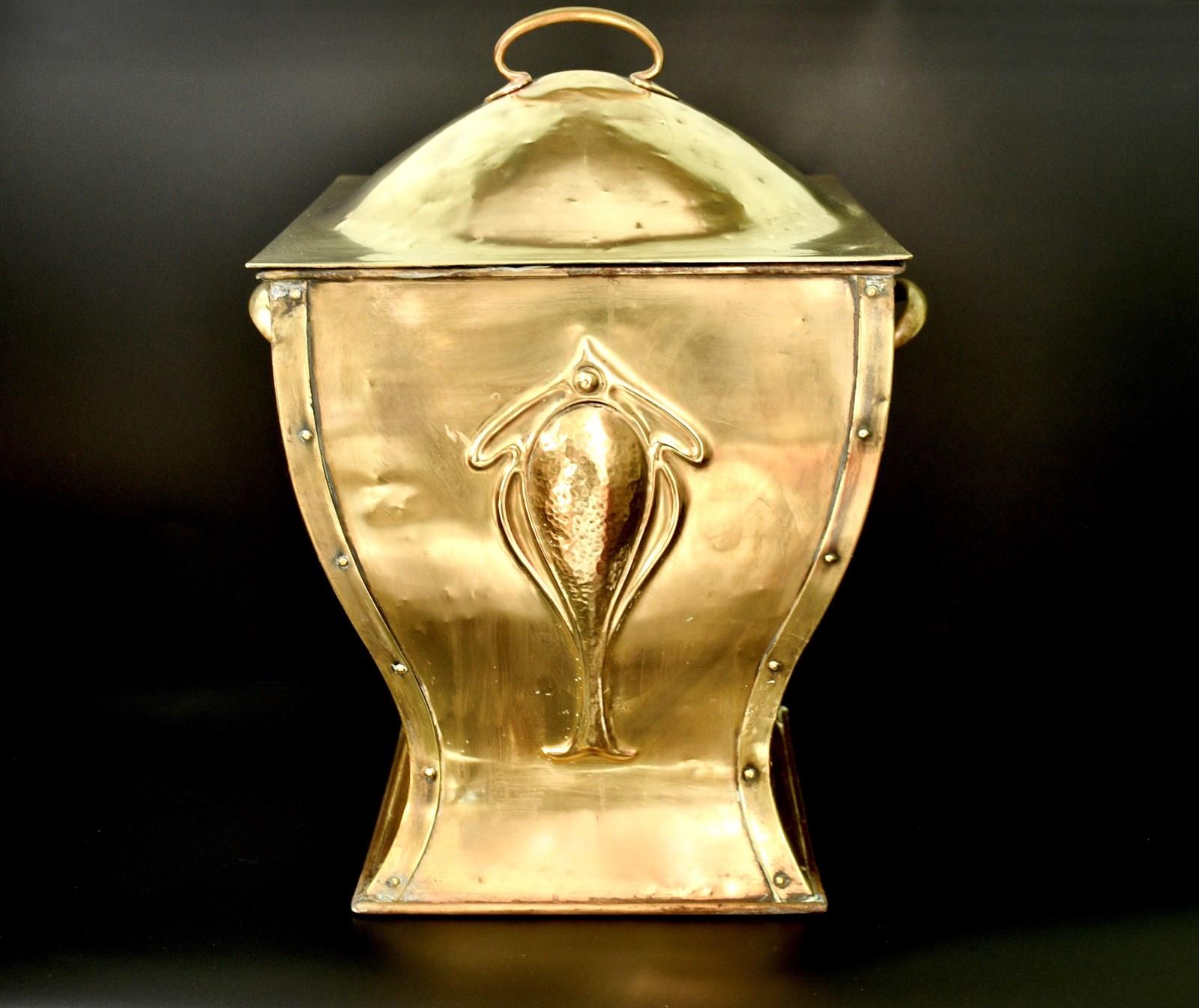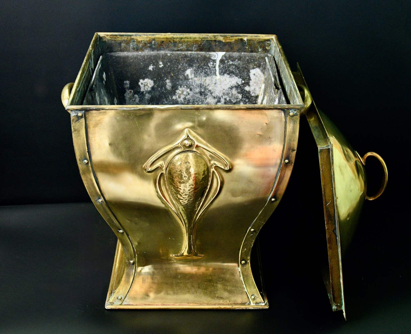 Antique Art Nouveau Brass Coal Bucket With Lid And Insert Archibald Knox Style