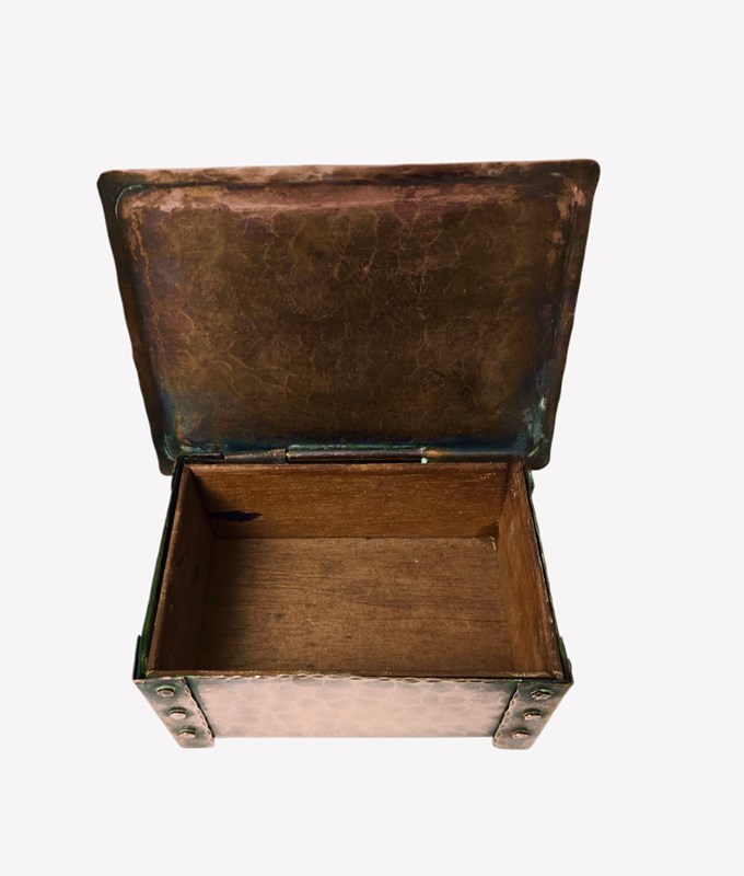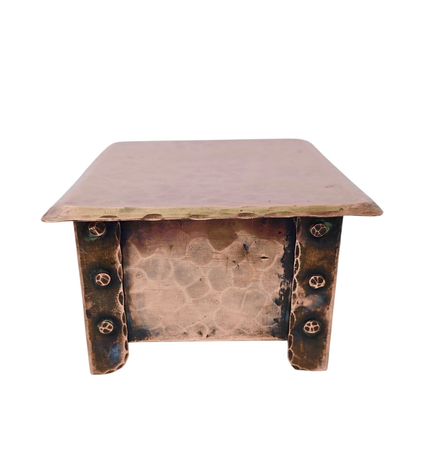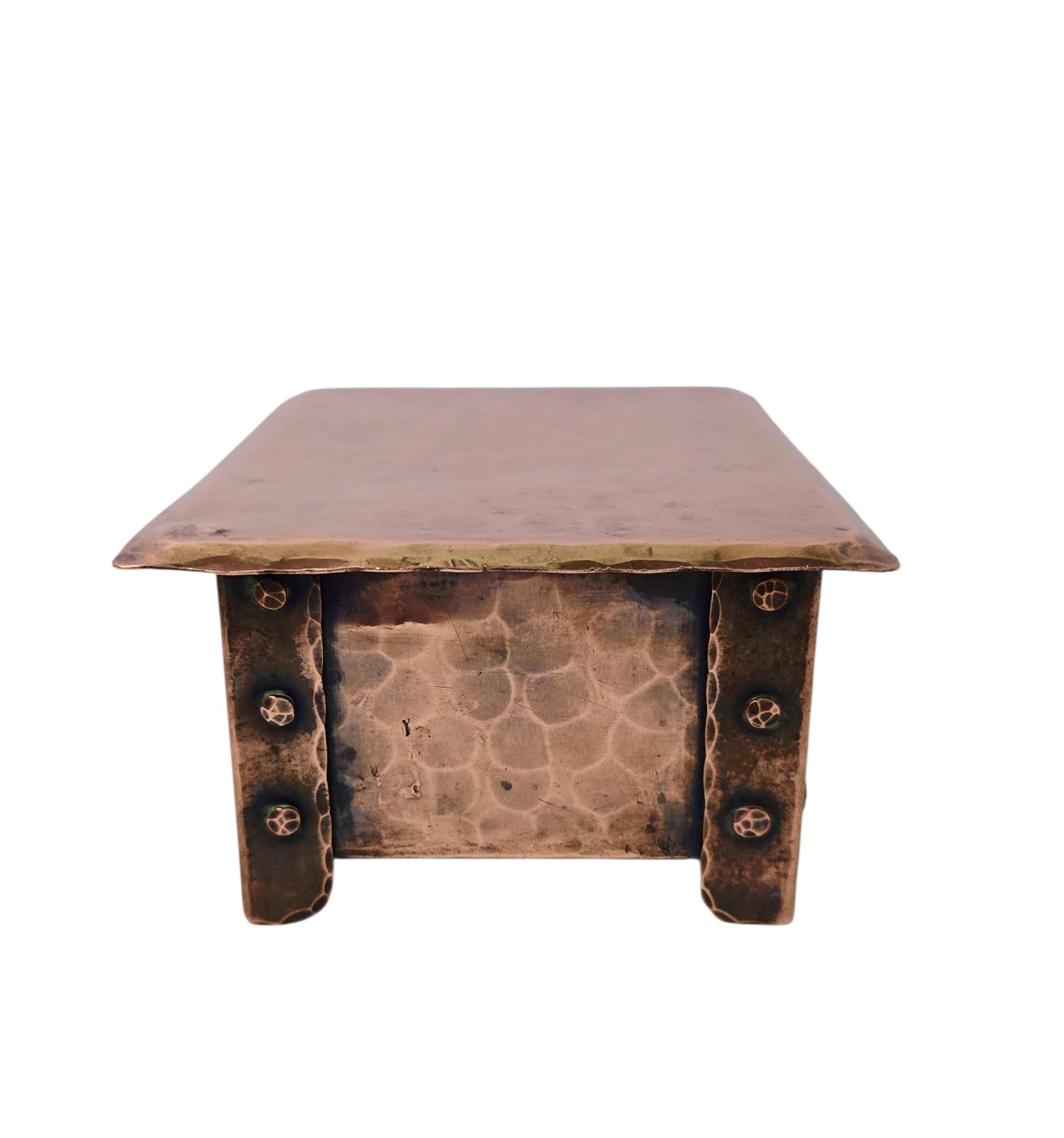 Antique Arts & Craft Copper Box With Wood Liner - Hand Planished