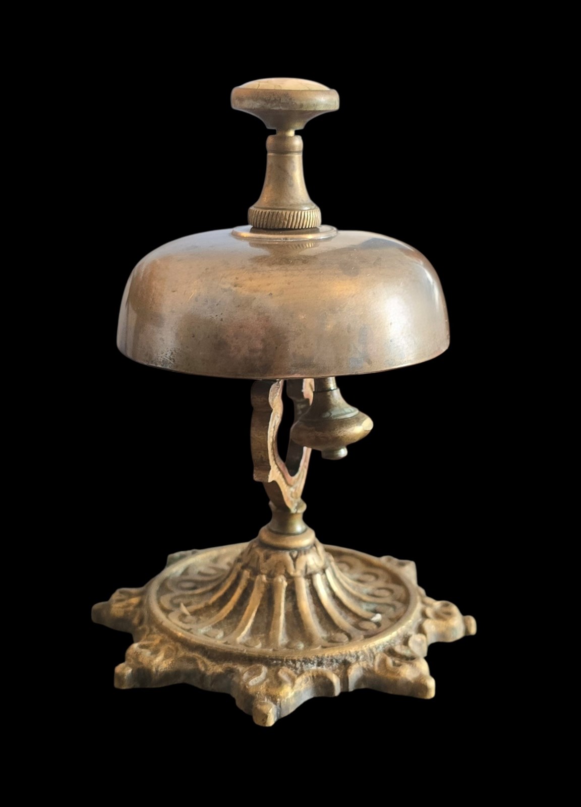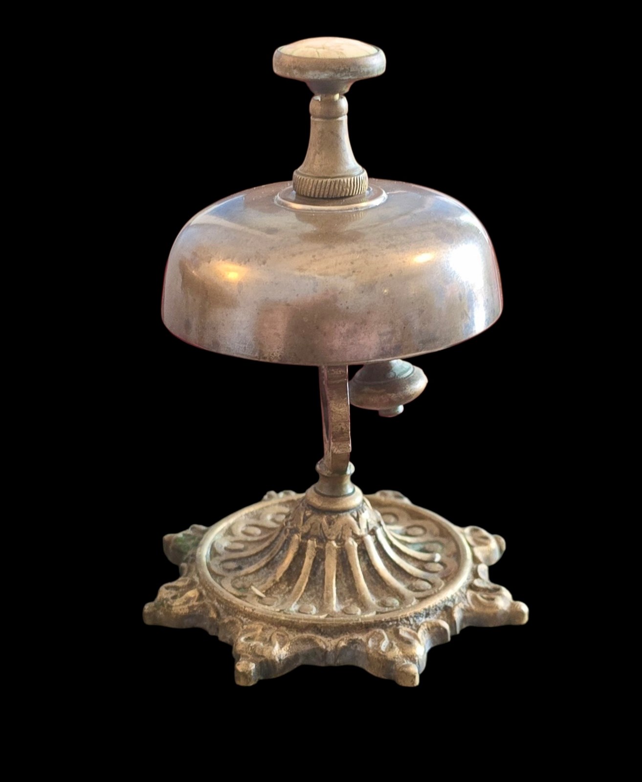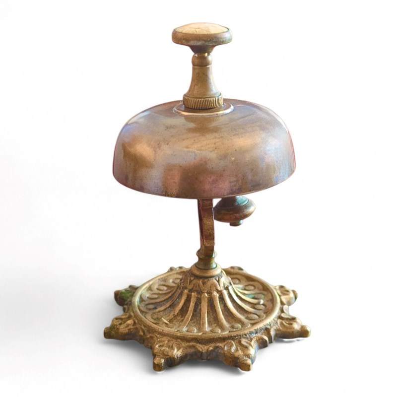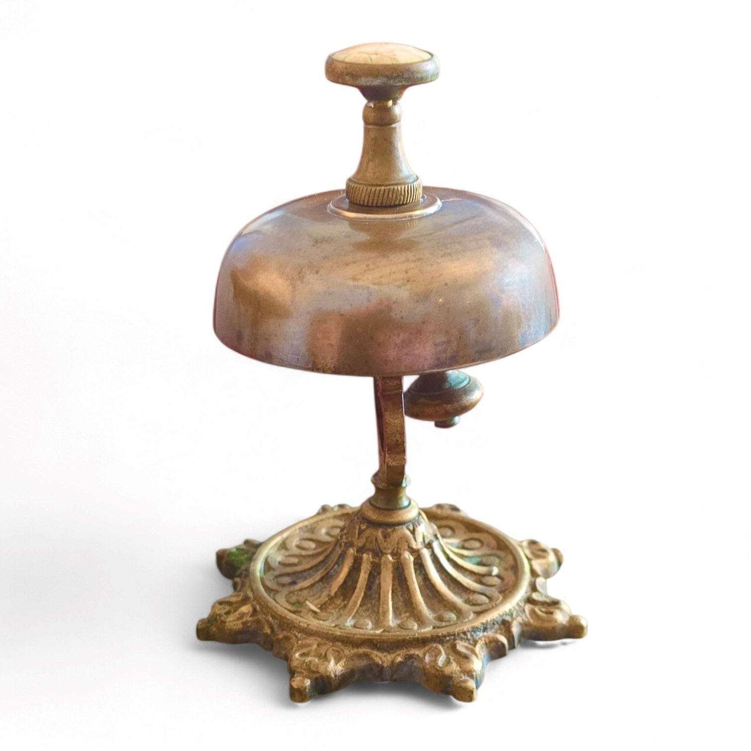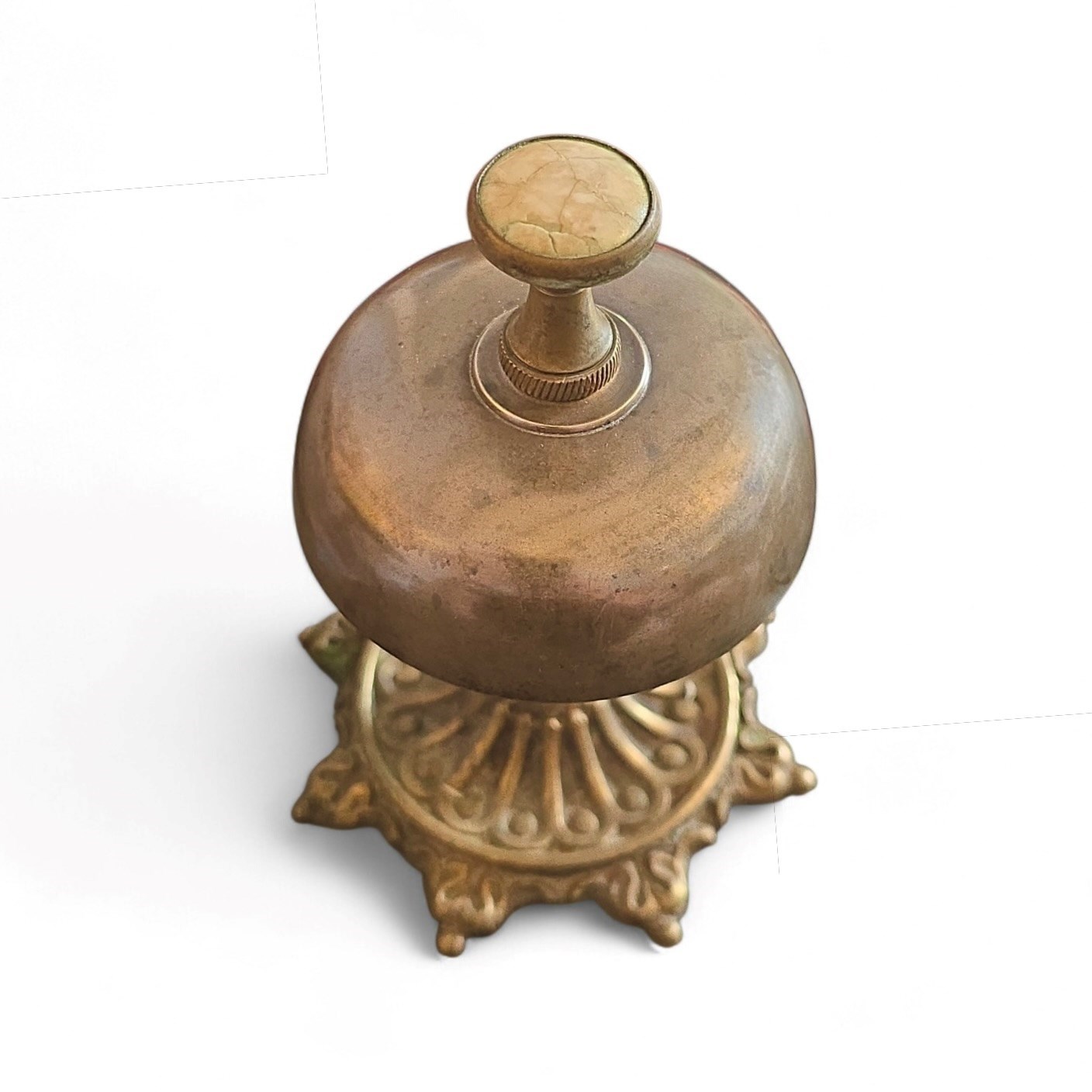 Antique Brass Desk Bell - Hotel/Desk/Shop Bell W/Marble Accents Late Victorian
