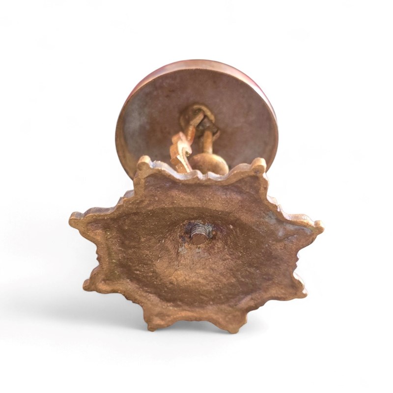 This Antique Brass Desk Bell is a rare and exquisite piece from the late Victorian era, featuring intricate marble accents that add to its charm. Made in the United Kingdom, this original desk bell exudes a sense of history and elegance, perfect for showcasing in a hotel, on a desk, or in shop setting. The brass material and Victorian style make it a timeless collectable item that is sure to impress any admirer of vintage decor.