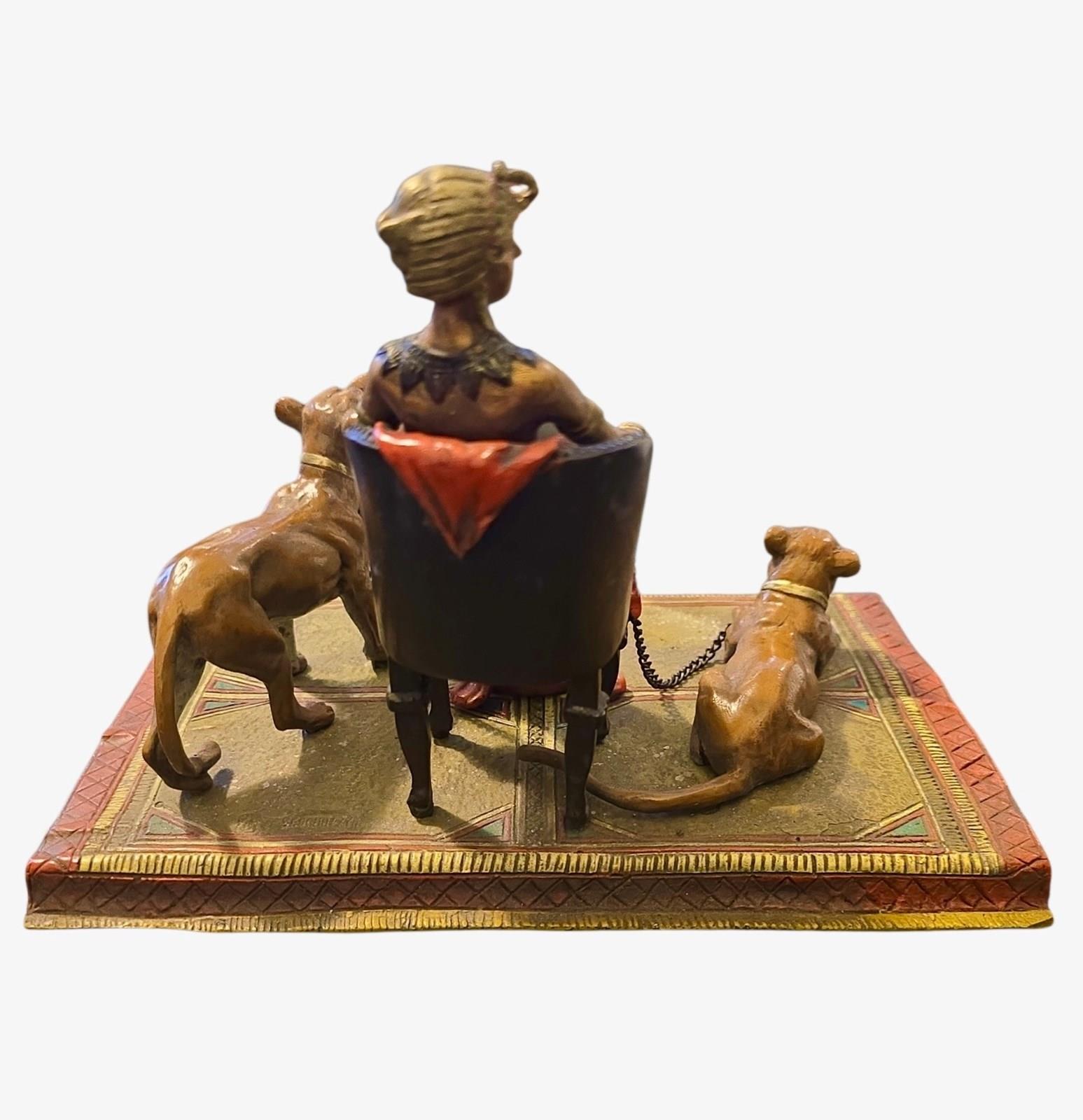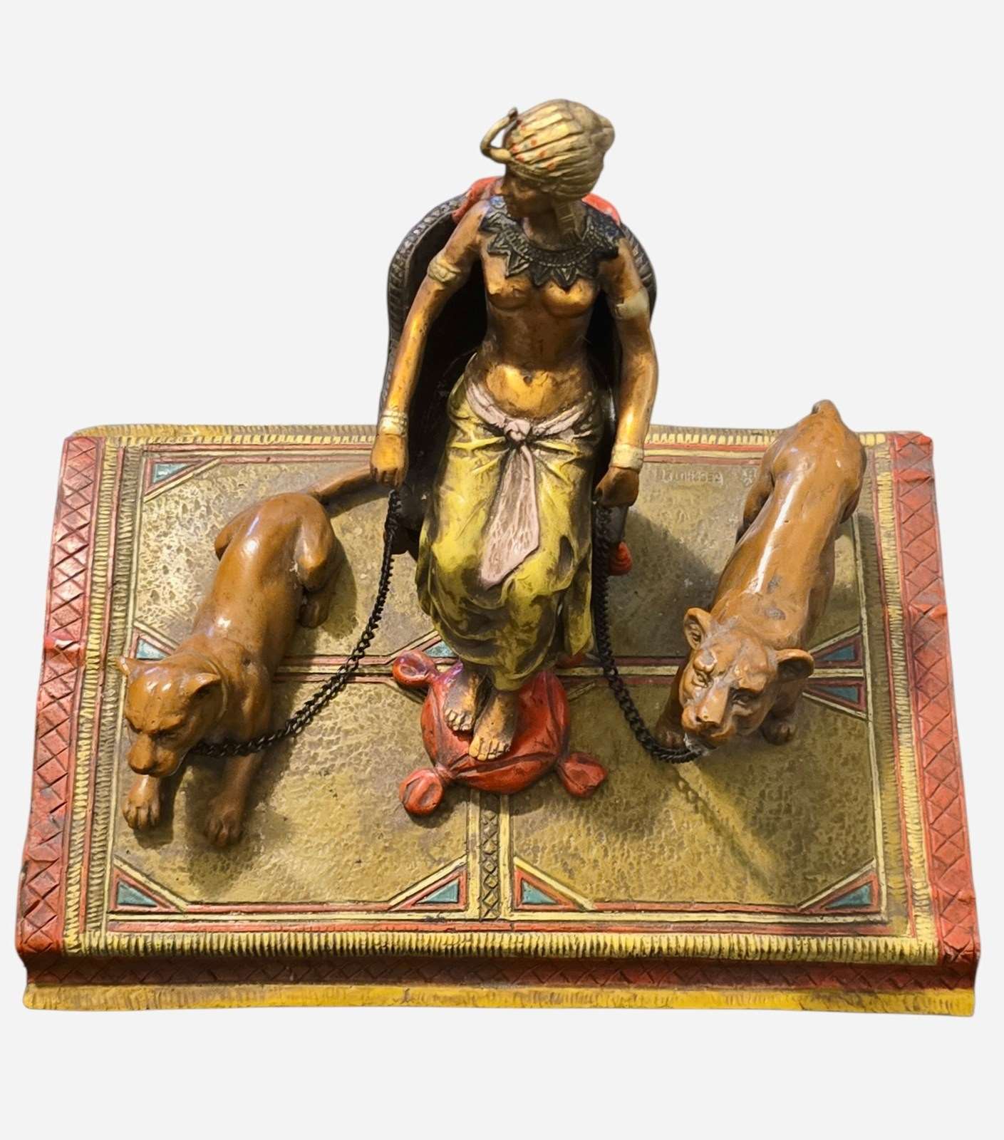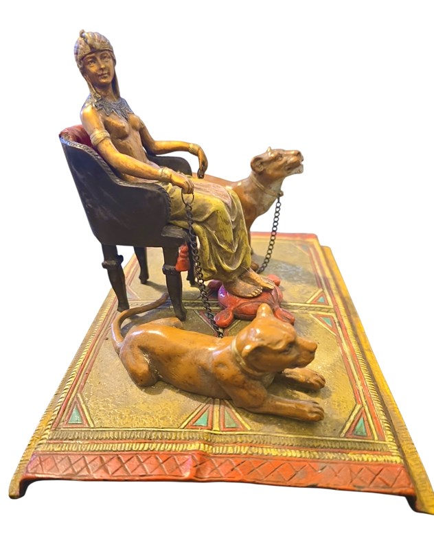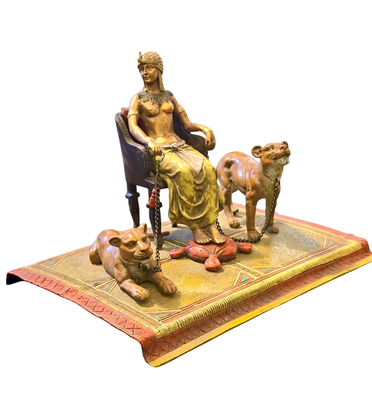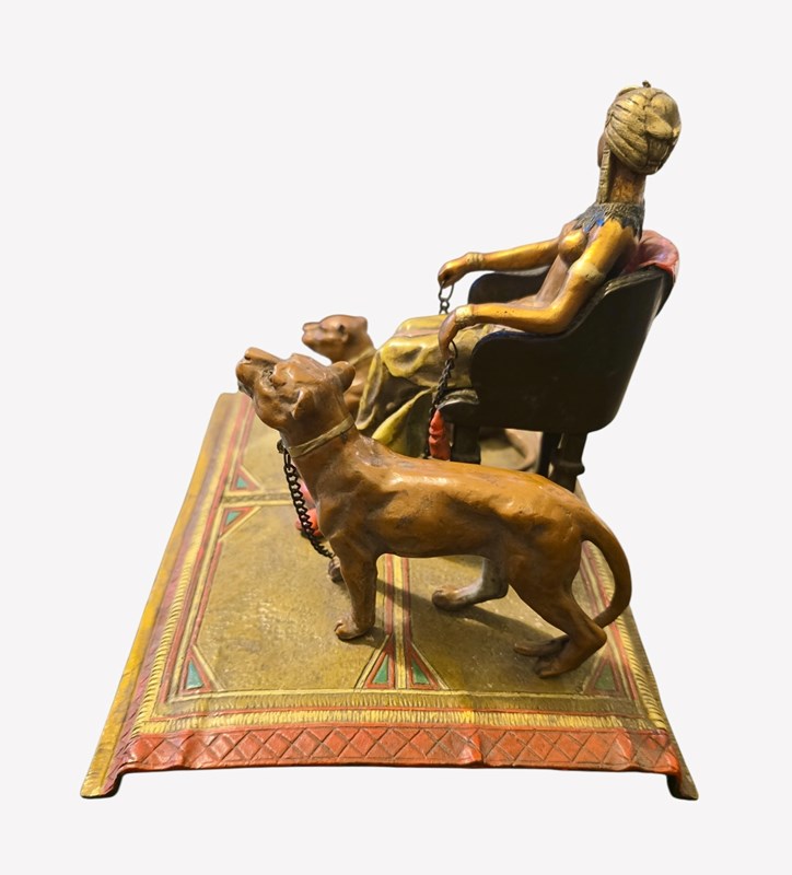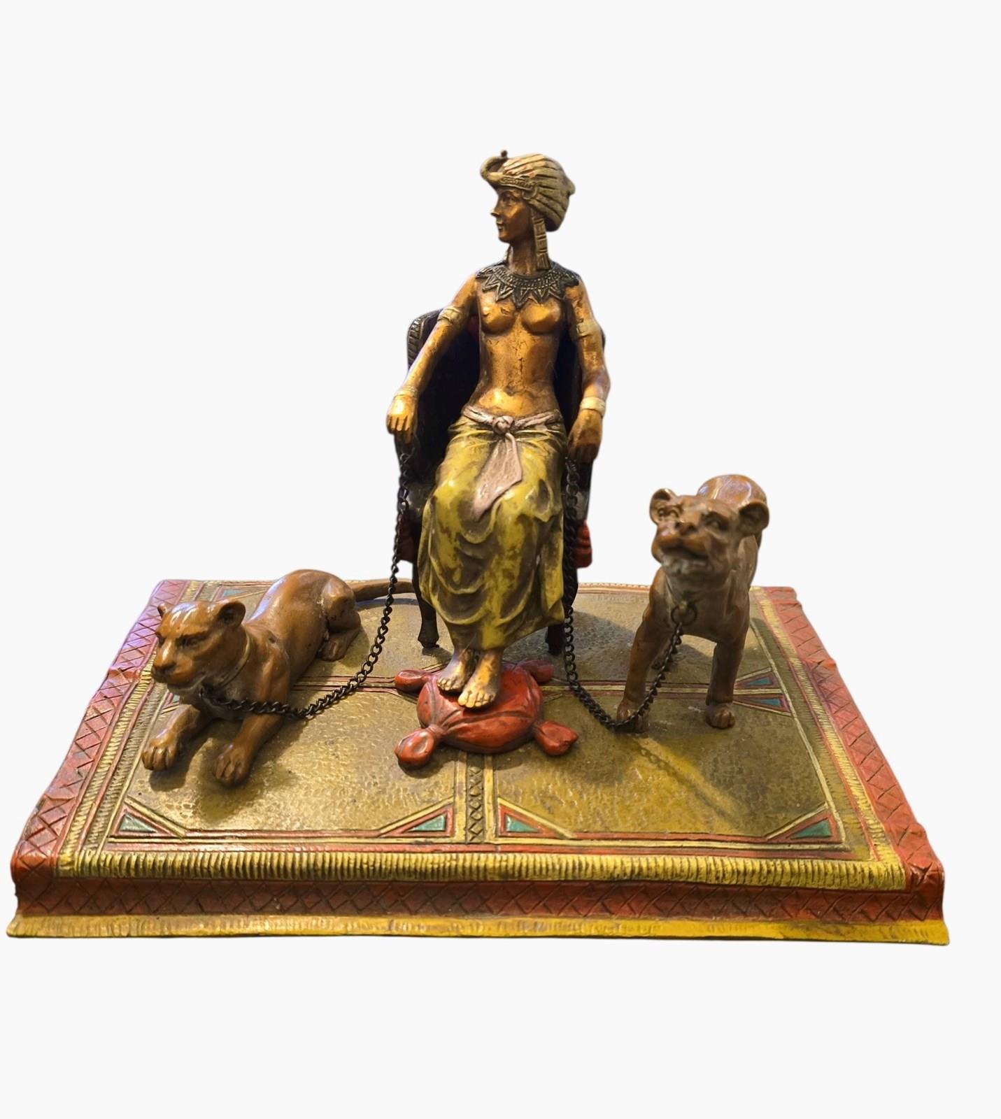 Antique Franz Bergman Cold Painted Bronze Of Cleopatra With Puma's Circa 1910
