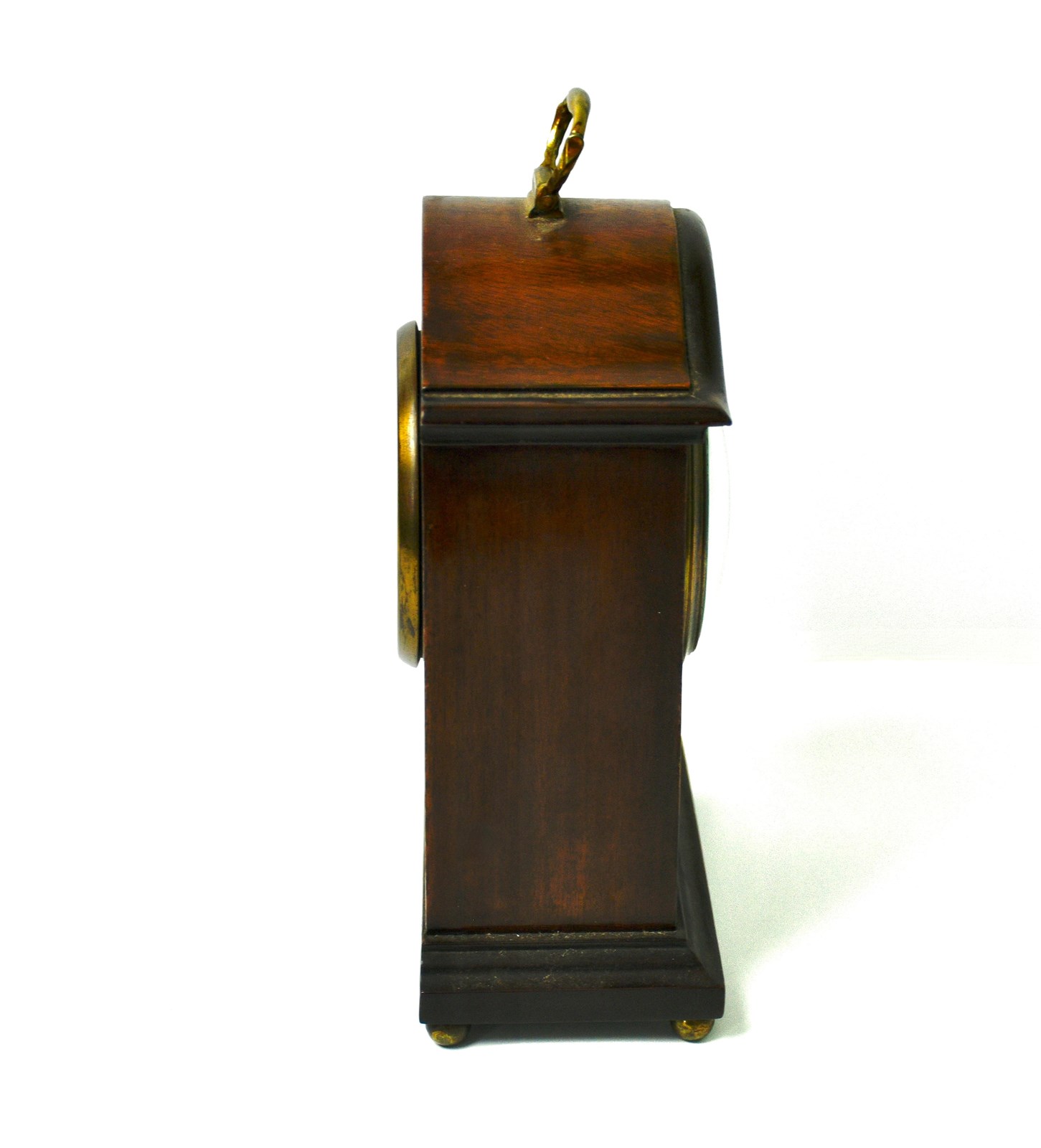 The clock is in fully working order and keeps good time and has brass ball feet! It has no damage or restoration and is in very good condition. It measures 21 cm tall to top of clock and 24 cm tall to top of handle (when up) and 16 cm across the front at the base and 8 cm from front to back. This clock does come with its key!