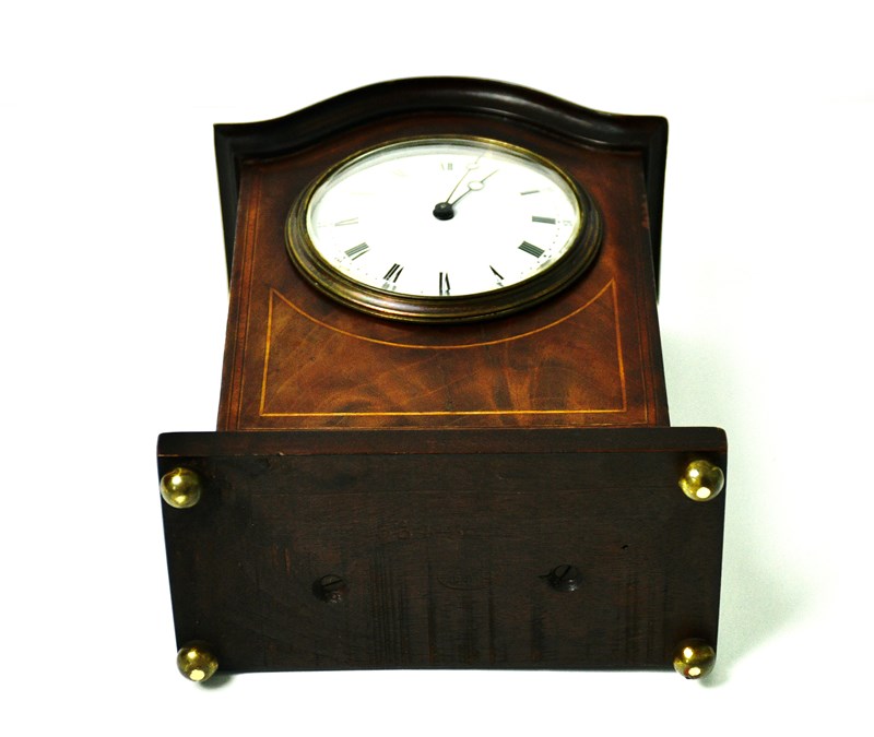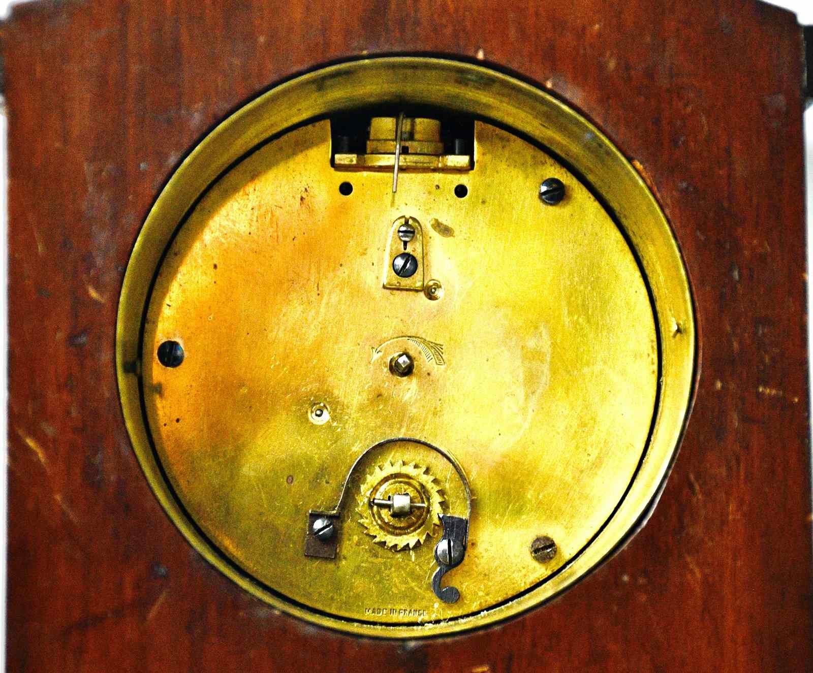 Antique French Mahogany Cased Clock With Stringing - Enamel Clock Face - Handle