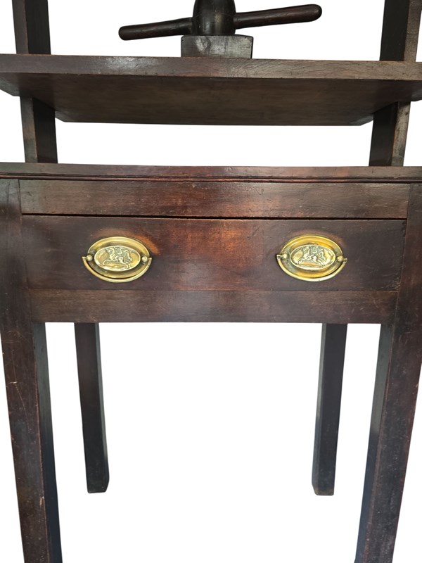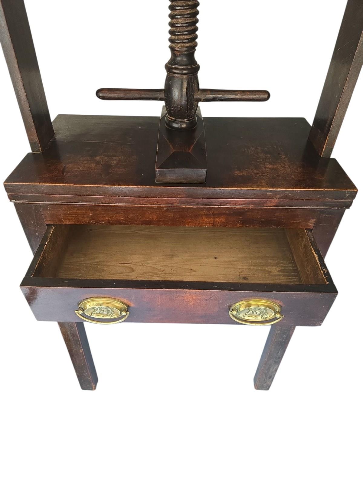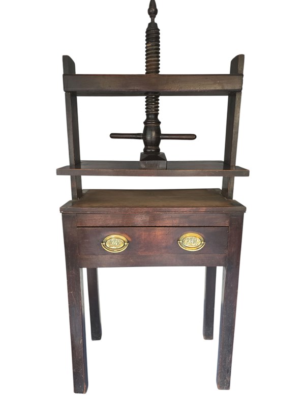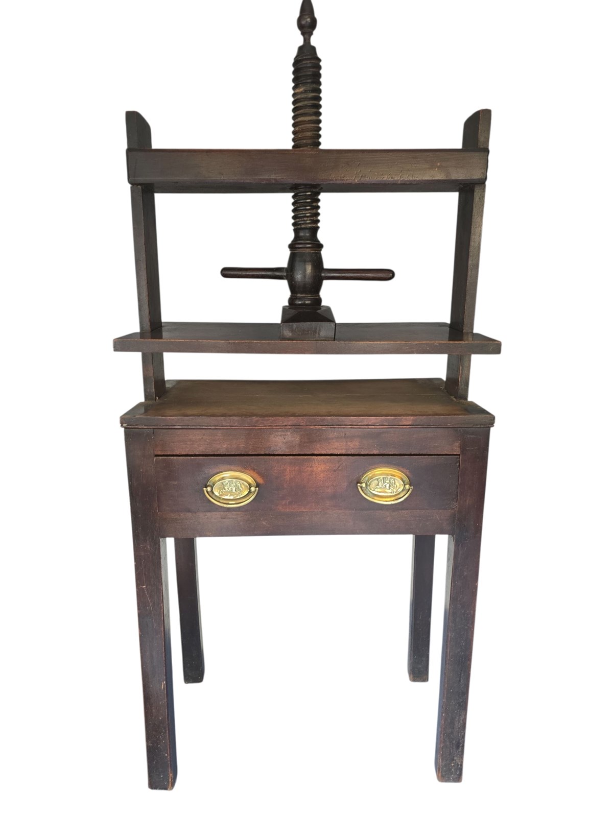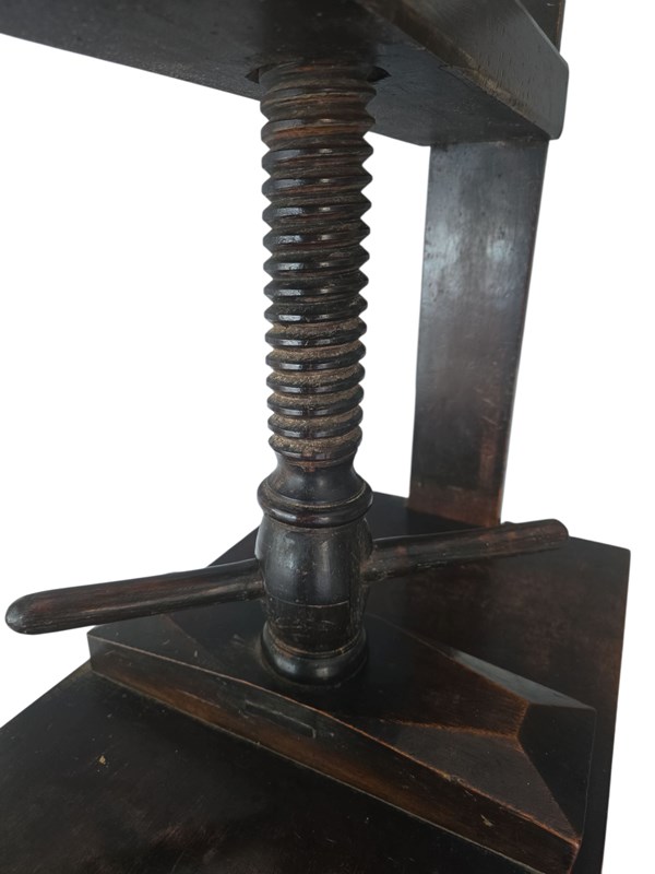 Condition: It has a very small hairline crack at the bottom of the left leg but has not been repaired and seems to be a very old crack probably caused by moving it across a stone floor (see photo's for details) this does not detract from this gorgeous book Press and does not affect the strength of the leg but wanted to be clear about the condition. No other issues and is fully working.