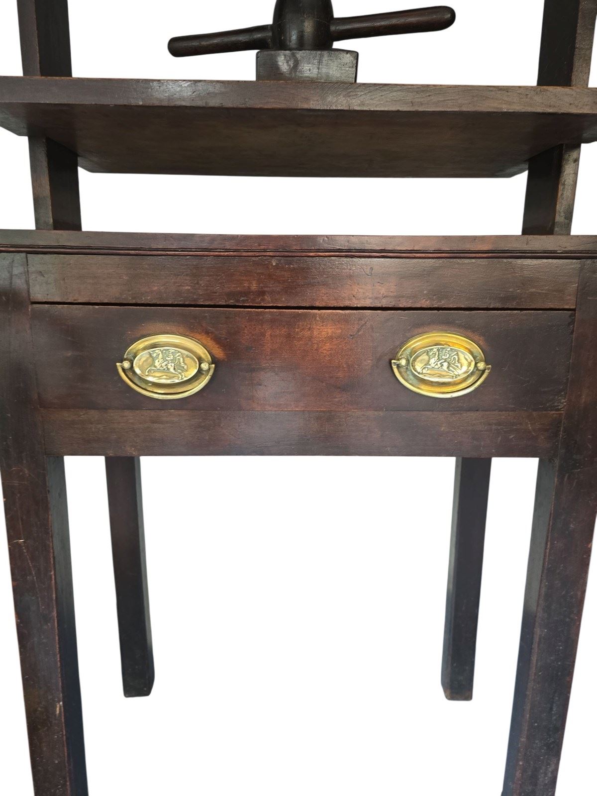 This Stunning Antique Georgian Floor Standing Book Press is an authentic piece of antique furniture made from Mahogany, specifically crafted in the Georgian style. This original floor standing book press showcases the intricate design and craftsmanship of the era, making it a unique and valuable addition to any antique collection or home décor. Its classic and timeless look adds a touch of historical elegance to any space, perfect for those who appreciate traditional and Antique pieces.