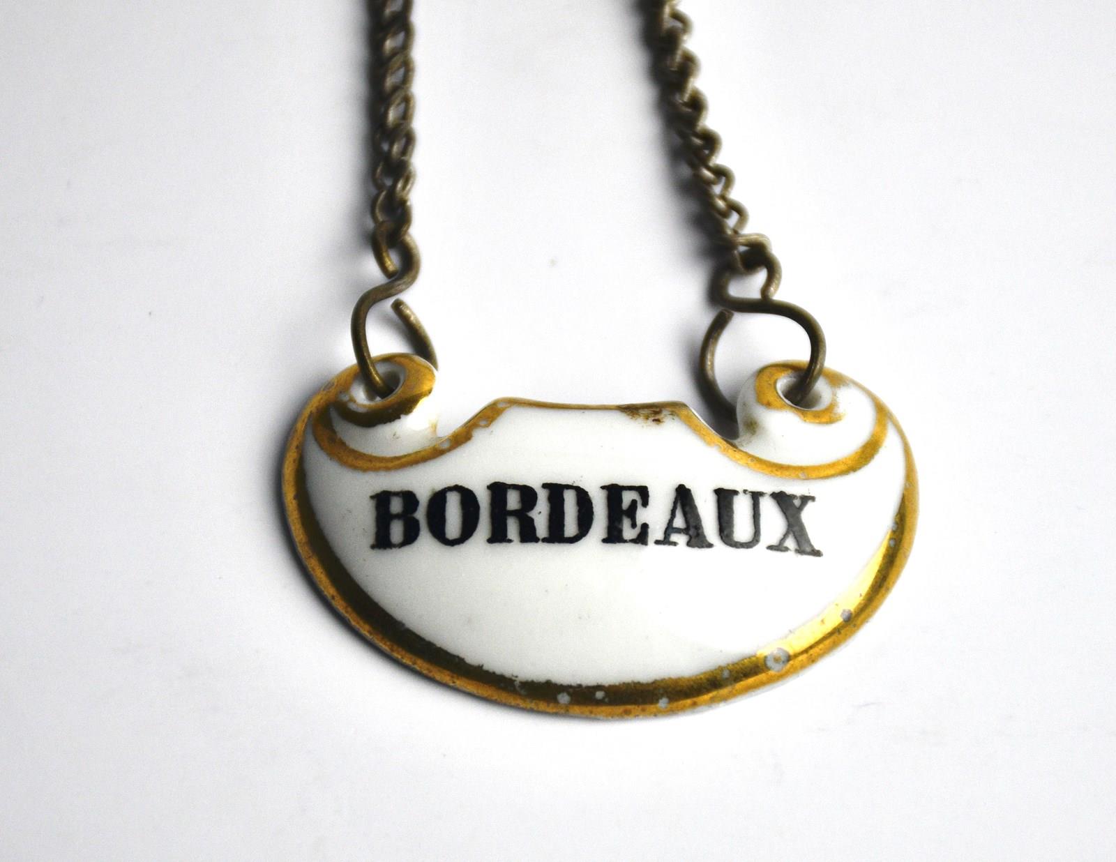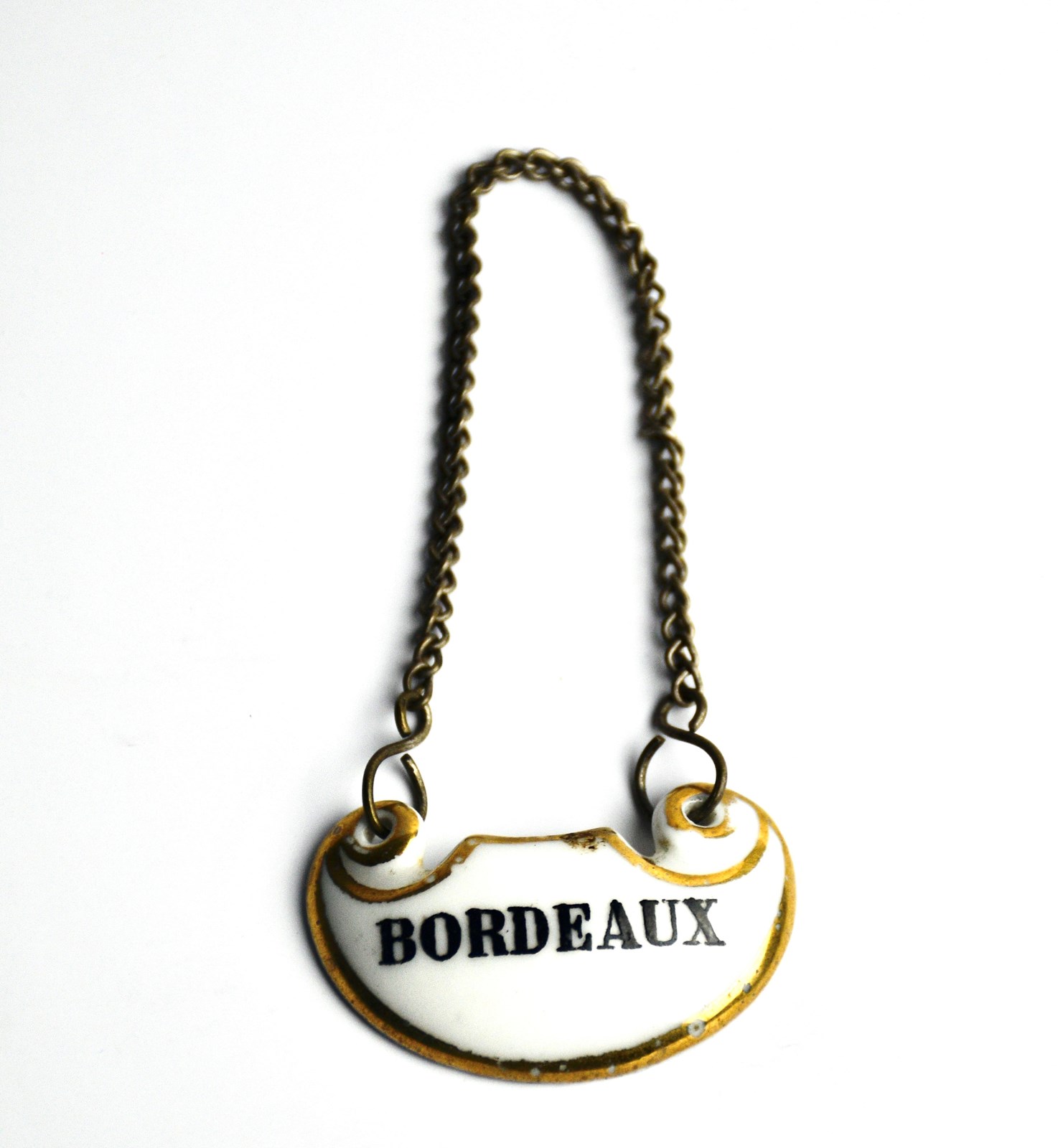 An antique French decanter label made of porcelain with gold edge, dating back to the 1850s, designed for Bordeaux. This collectable item, suitable for decanters, represents a bygone era of craftsmanship and elegance. Made in France, it adds a touch of sophistication to your wine collection.