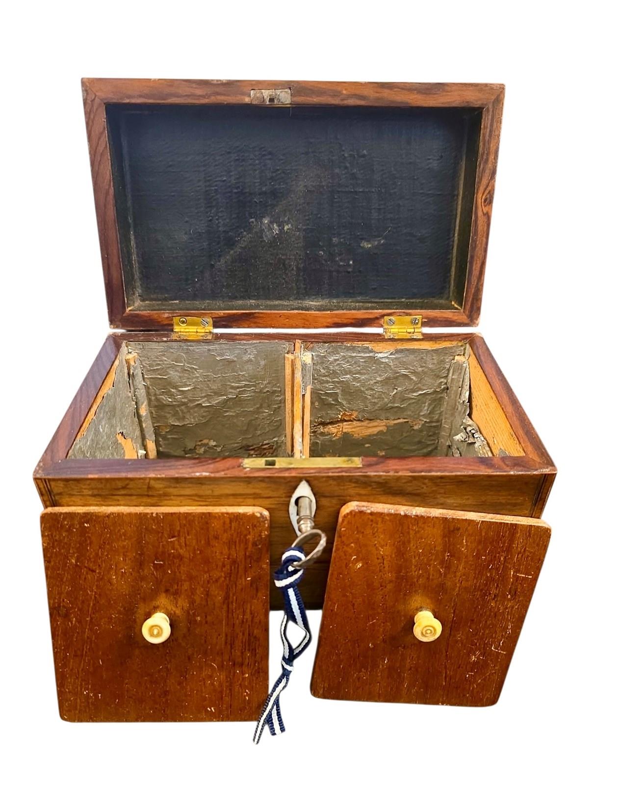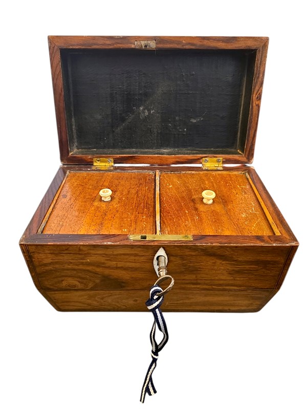 Antique Regency Period (1811-1820) Rosewood Tea Caddy With Original Key