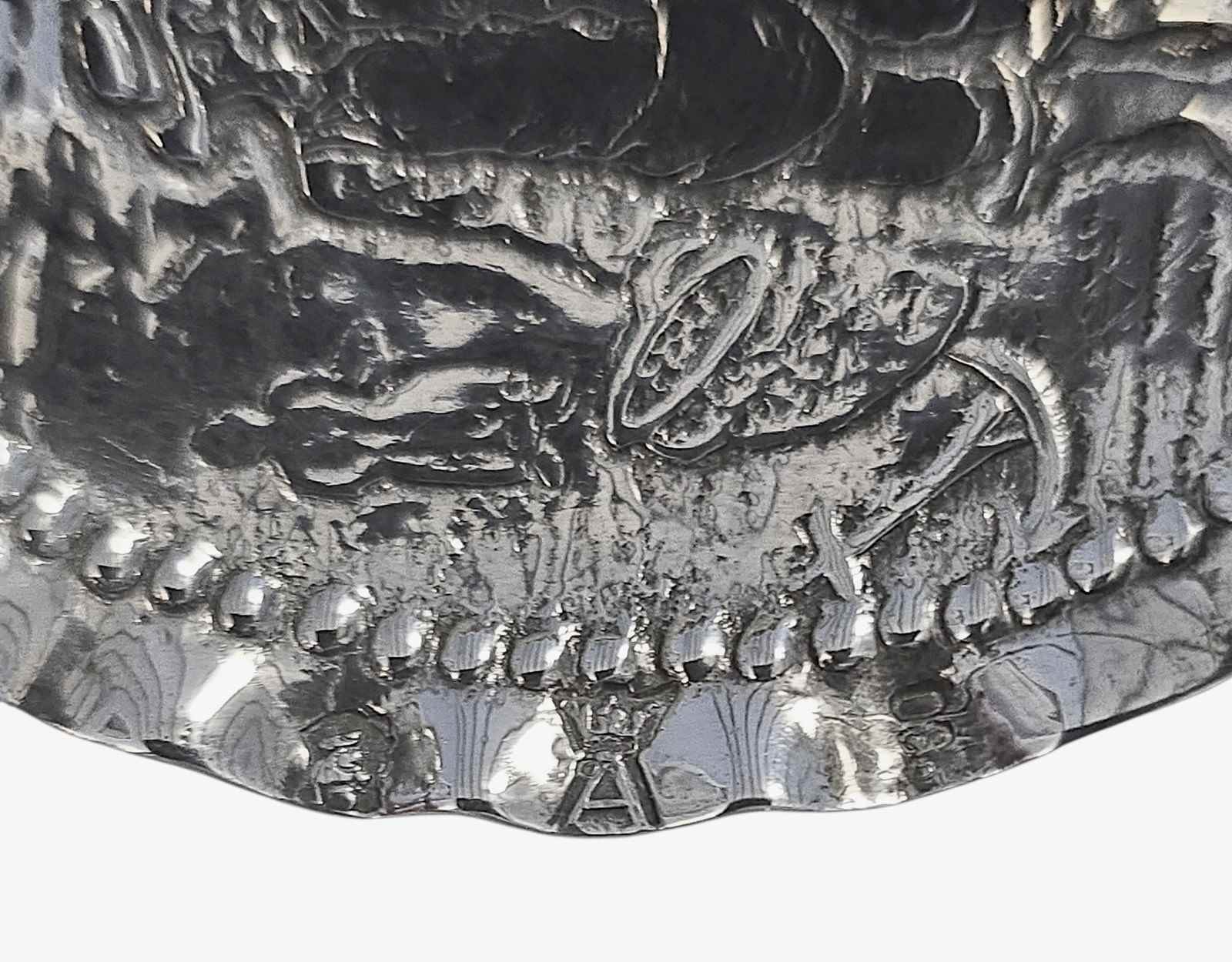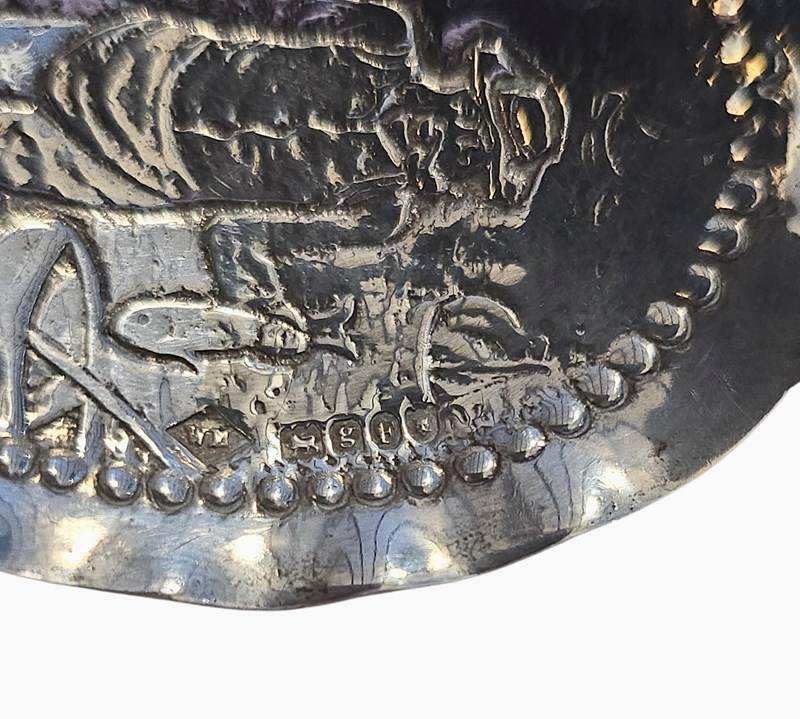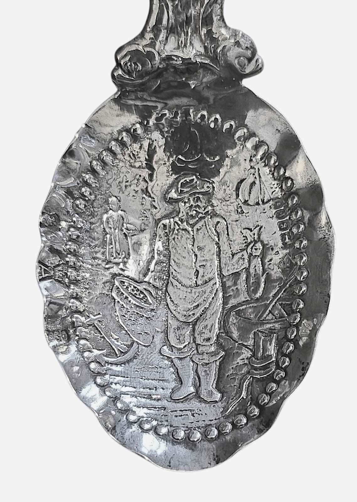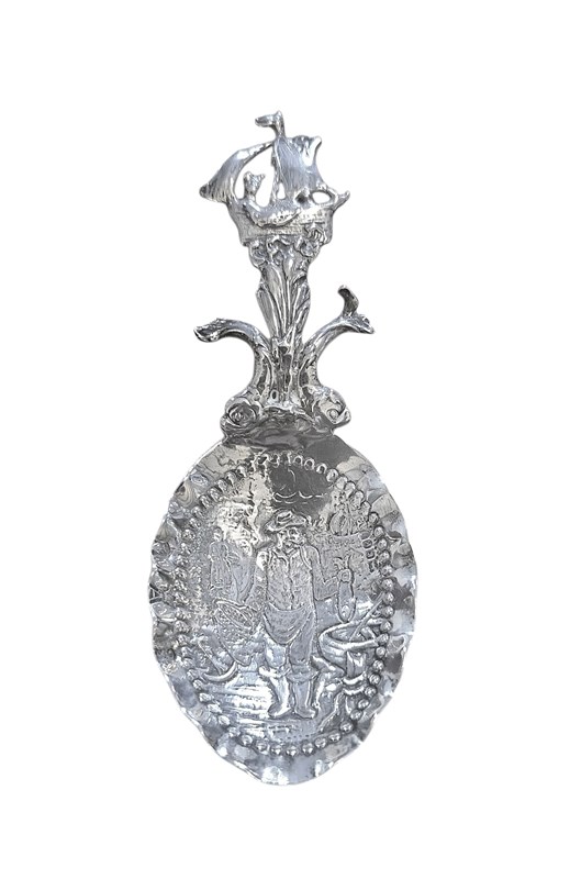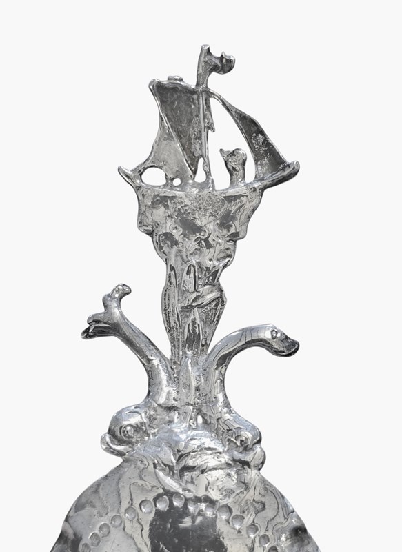 The spoon is in very good condition with no damage or restoration and is clearly hallmarked by both the silversmith in Germany and the importer based in London and is marked sterling silver. It measures 12.5 cm long and 4.5 cm wide across the middle of the bowl and weighs 32 grams.