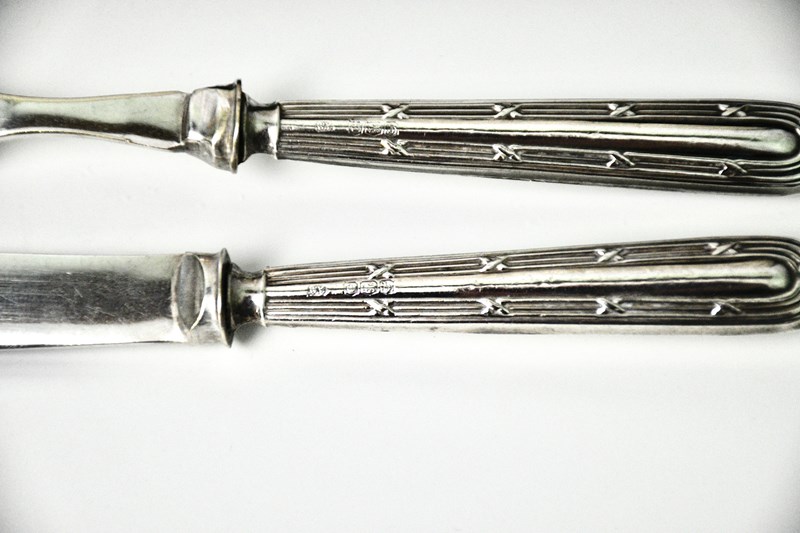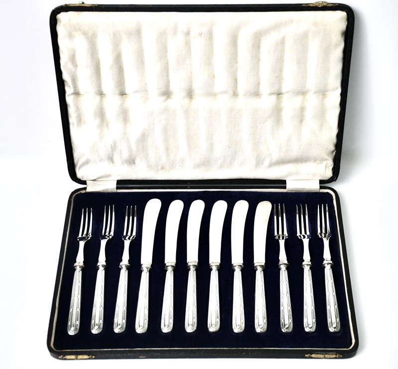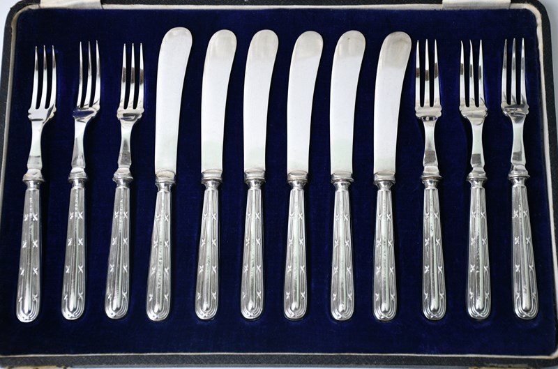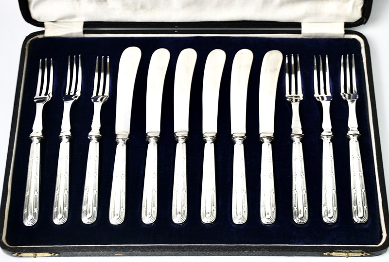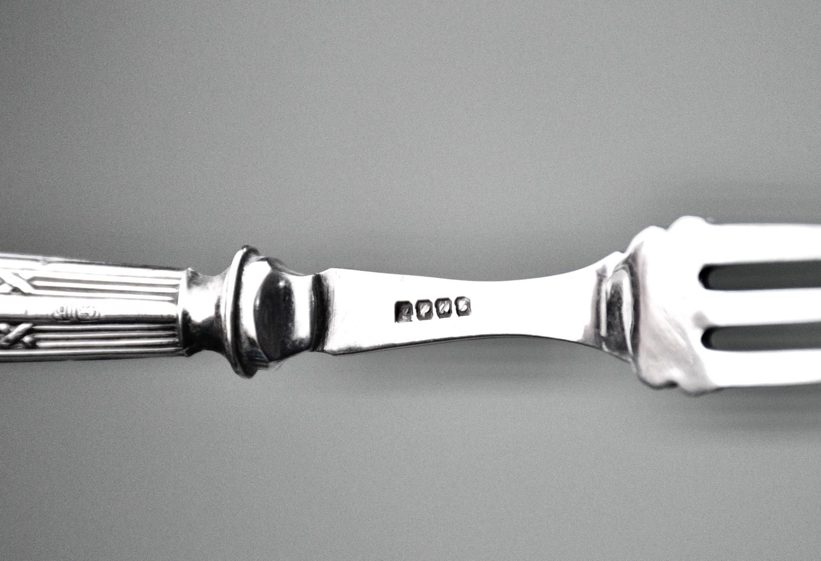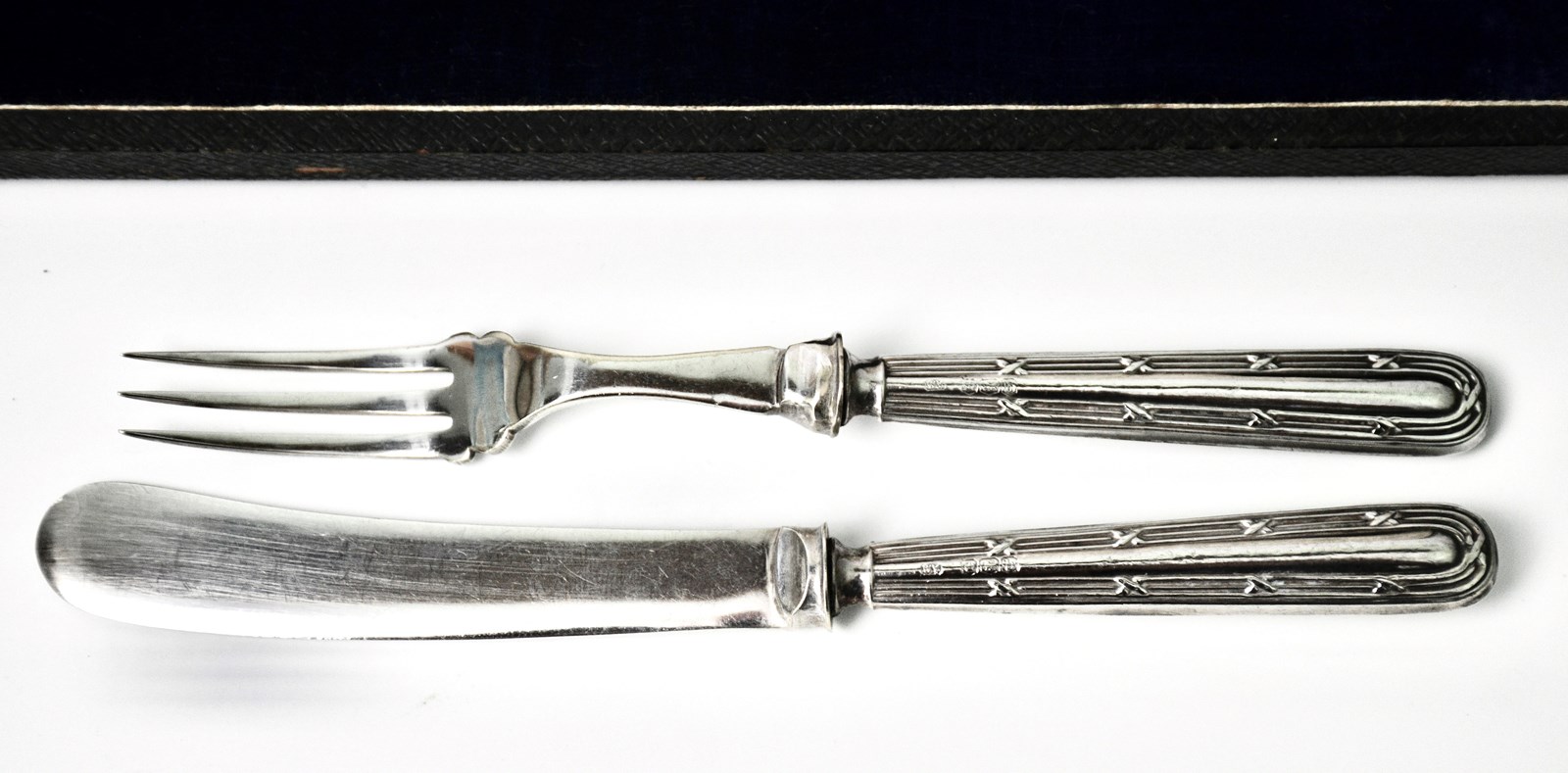 Antique Silver Desert Fork And Knife Set Sheffield 1919 William Yates