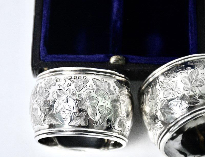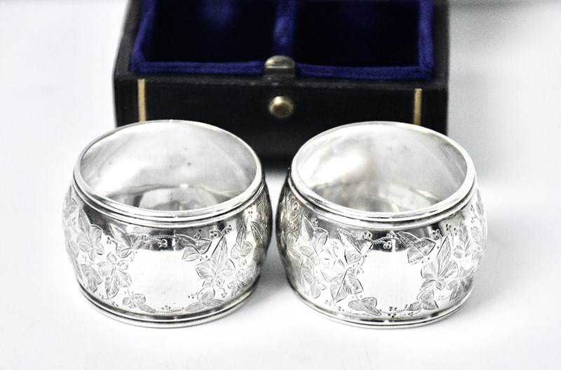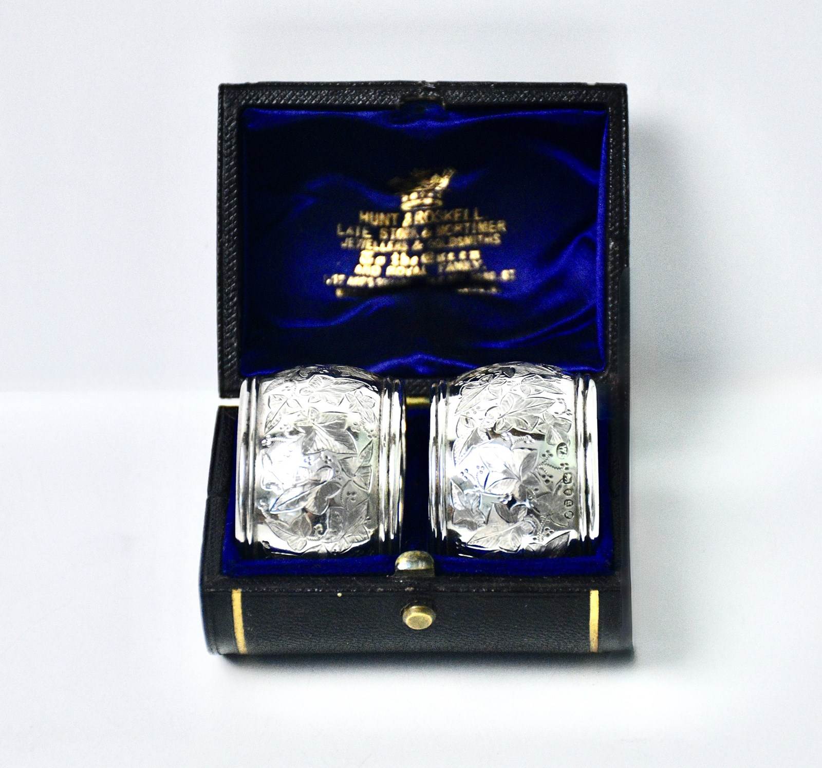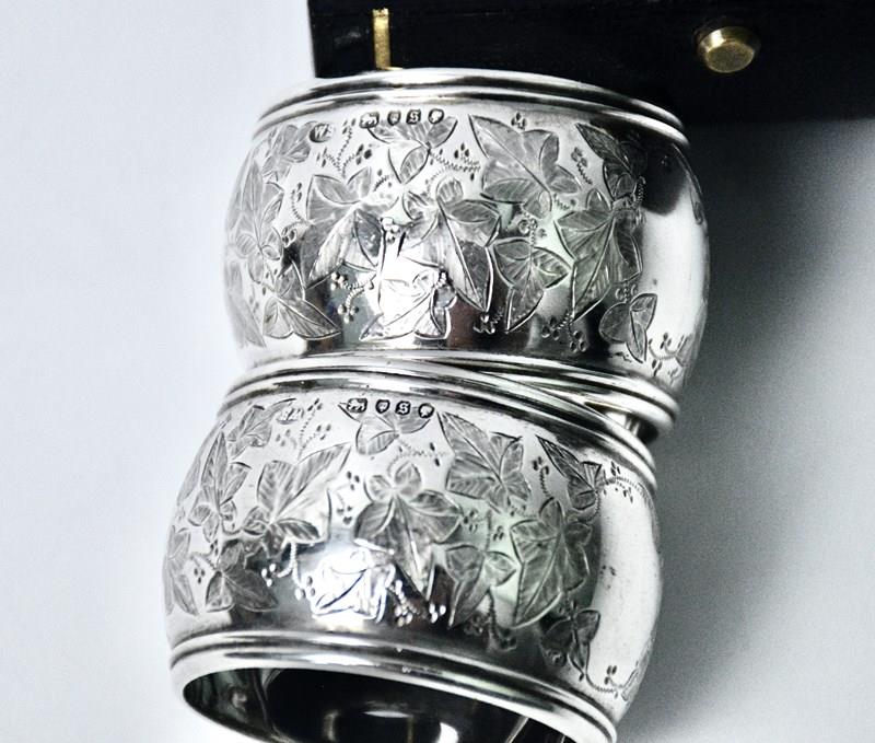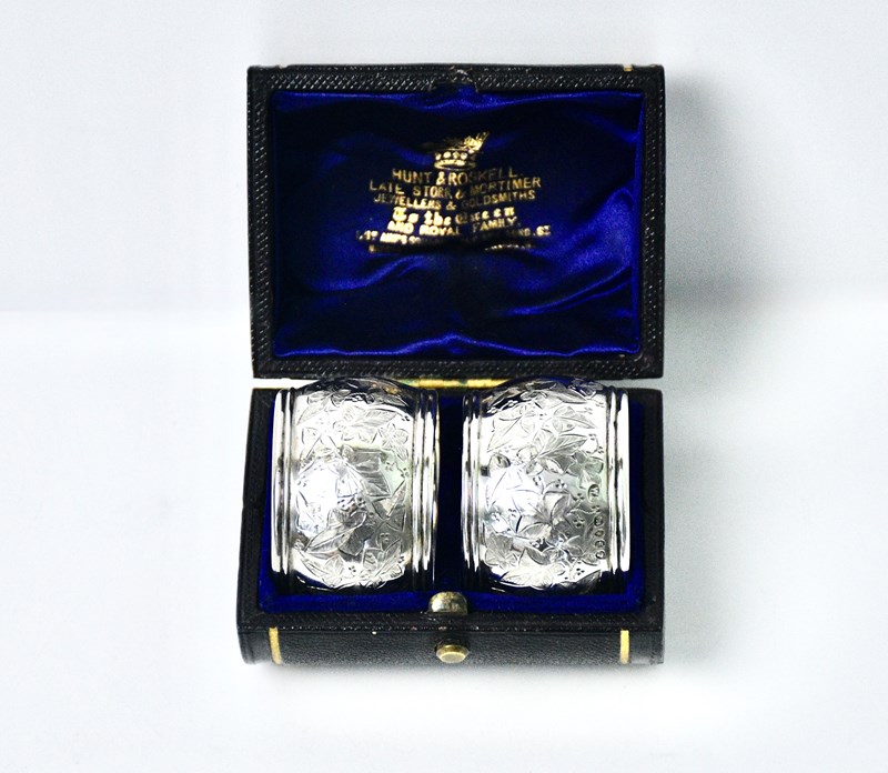 Antique Silver Napkin Rings (2) Cased By William Summer 1873 London