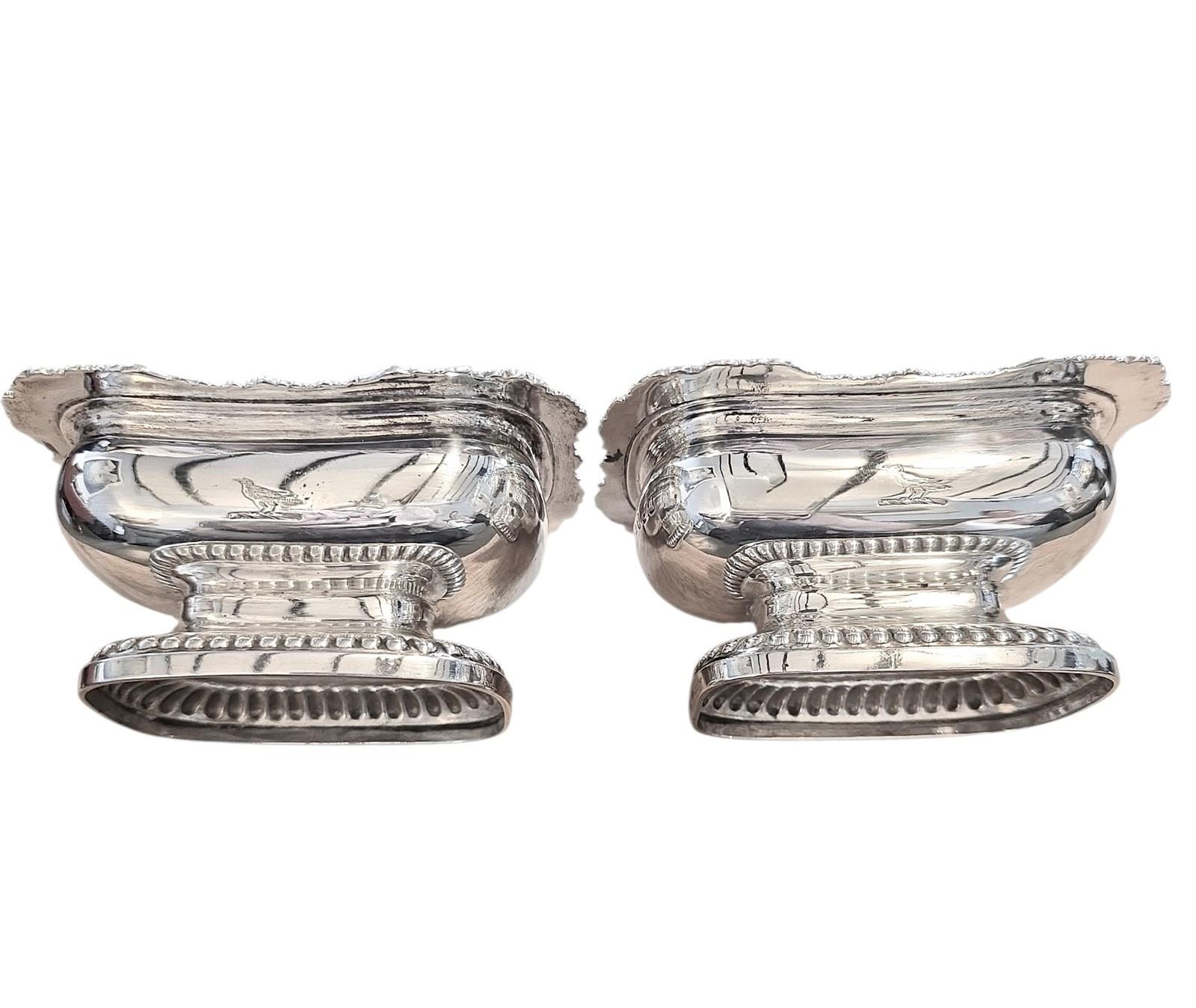 This pair of Salts are in beautiful condition with no damage or restoration - but does have a few minor (tiny) scratches to the bottom from 200+ years of use but does not detract from the salts (see photo's for more details)) and made by the renowned silversmiths Rebecca Emes and Edward Barnard I. Lots of history and an exceptional pair. they measure 9.5 cm long, 7.5 cm wide and 4.75 cm tall and have a combined weight of 201 grams.